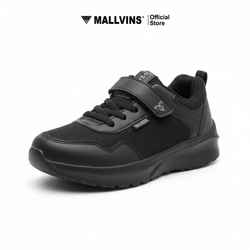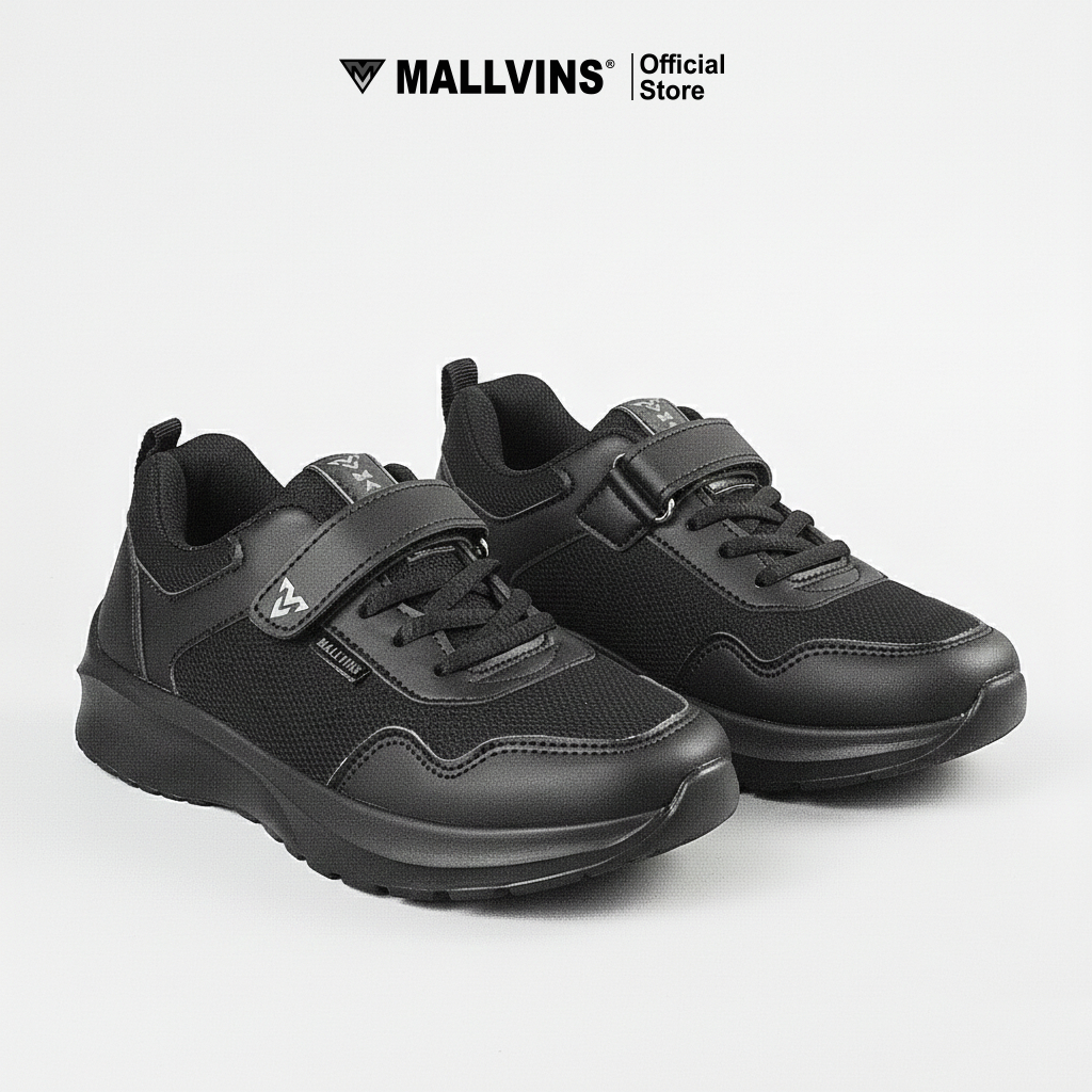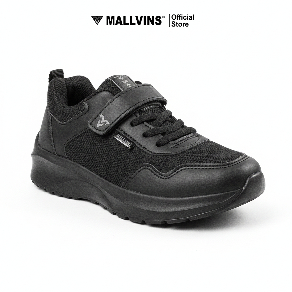MALLVINS Sepatu Sekolah Anak Size 31-38 Full Hitam