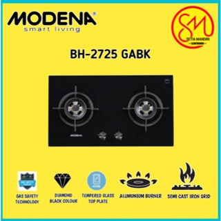 MODENA Kompor Gas Tanam 2 Tungku BH 2725 GABK Kaca Tempered Glass Gas Safety