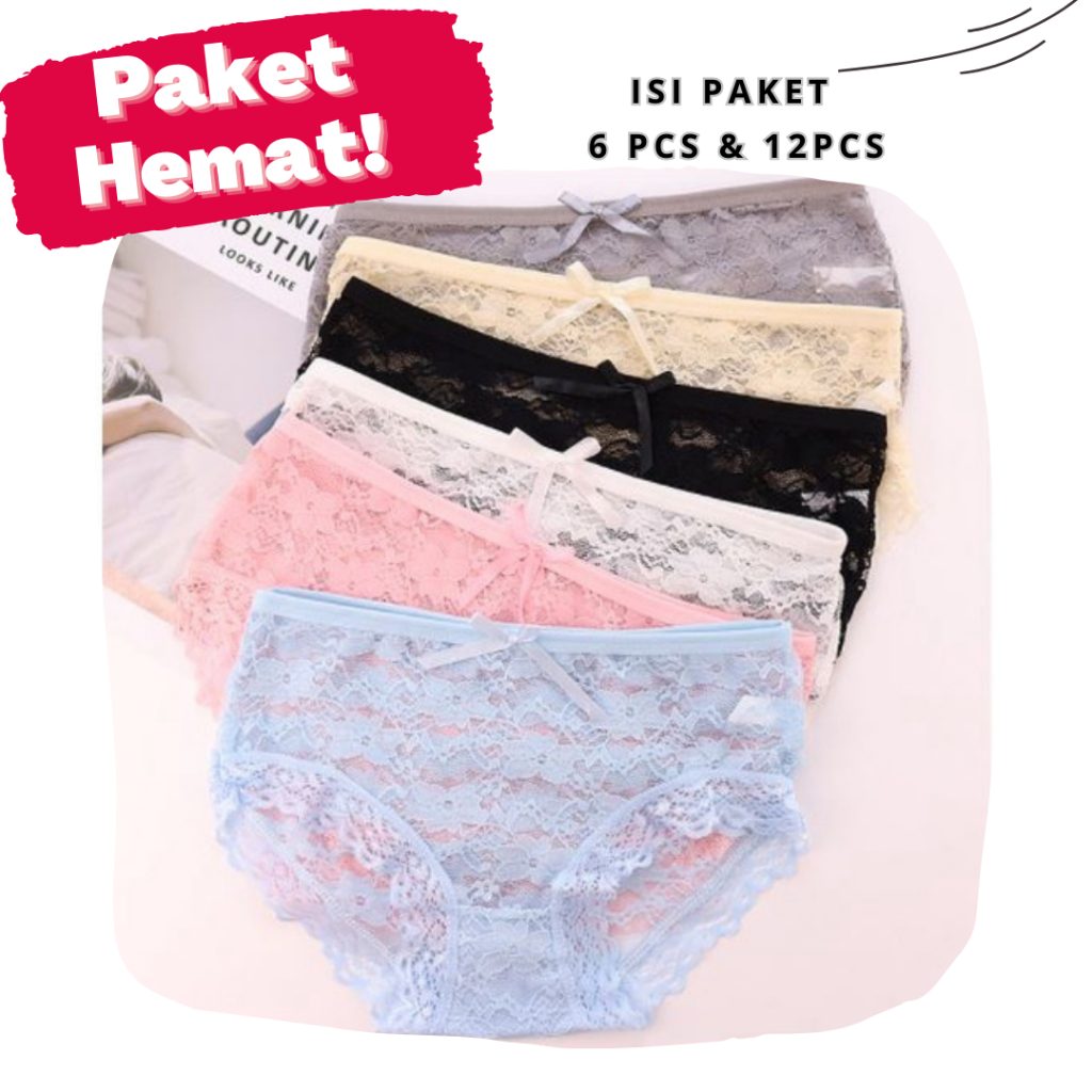 PAKET HEMAT CD036 CELANA DALAM ISI 6 PCS DAN 12 PCS Celana Dalam Wanita Brukat Murah Motif Murah Gratis Ongkir