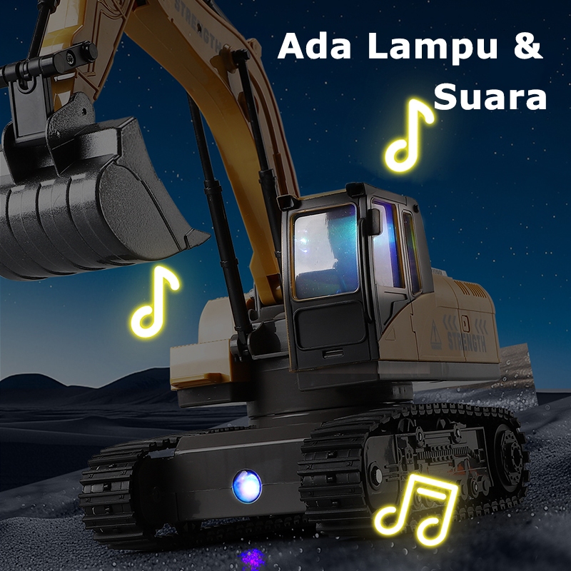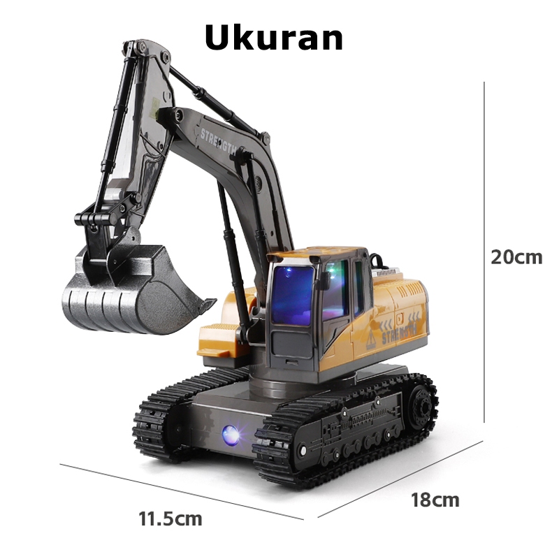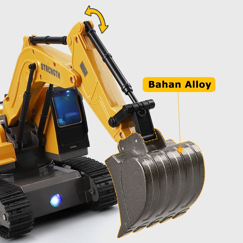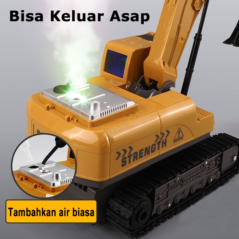Excavator Remote Control Bisa Keluar Asap 11CH Upgraded 2.4GHZ RC Ekskavator dengan Lampu Suara Mainan Beko Anak Bucket
