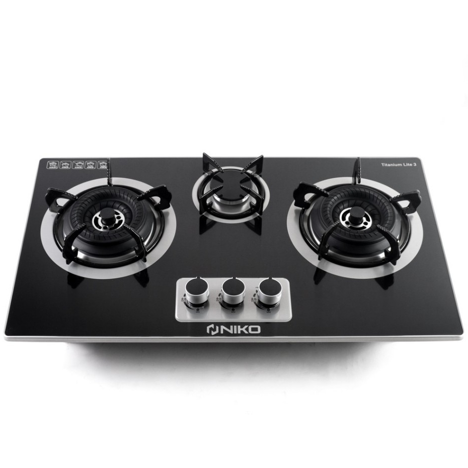 Niko Titanium Lite Kompor Gas / Kompor Tanam Kaca 3 Tungku Stainless Steel Api Biru - FREE ONGKIR