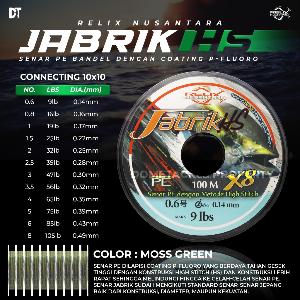 Best Seller Jabrik HS X8 Connecting 100m dan Pack 200m 300m 400m 500m Multicolor dan Moss Green Senar PE Relix Nusantara