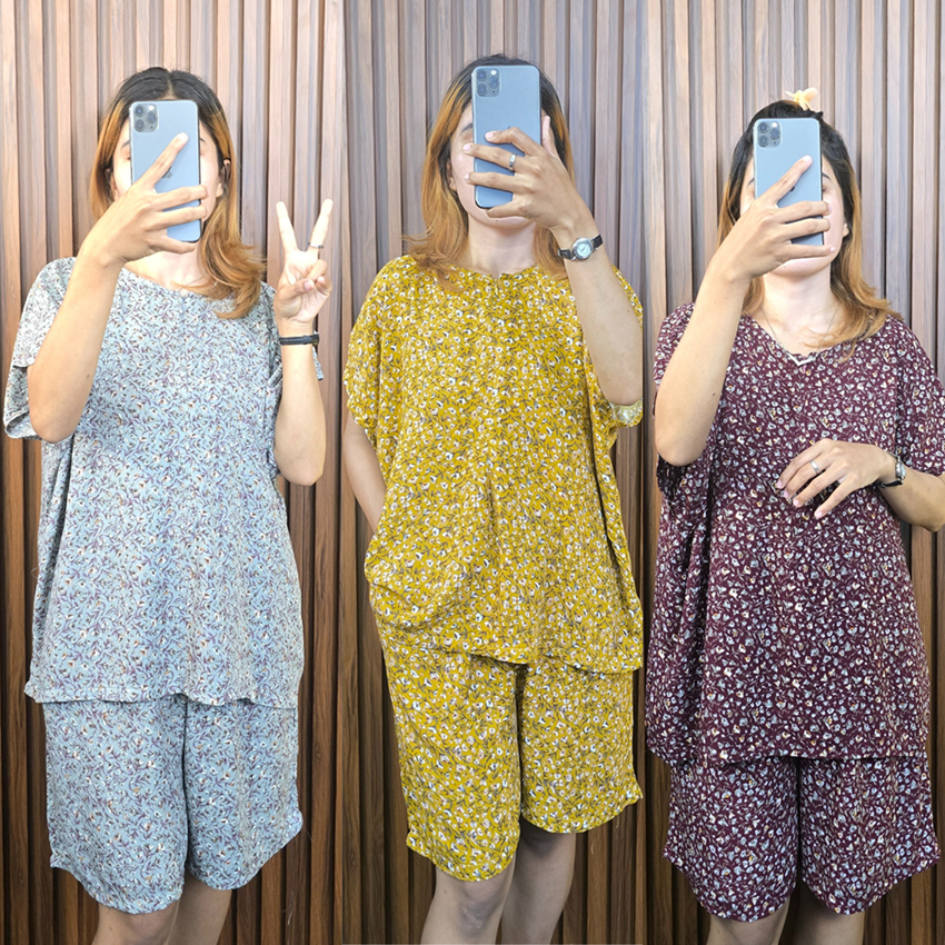 TERLARIS Setelan Baju Tidur Rayon Bunga Dewasa Jumbo dan Sedang