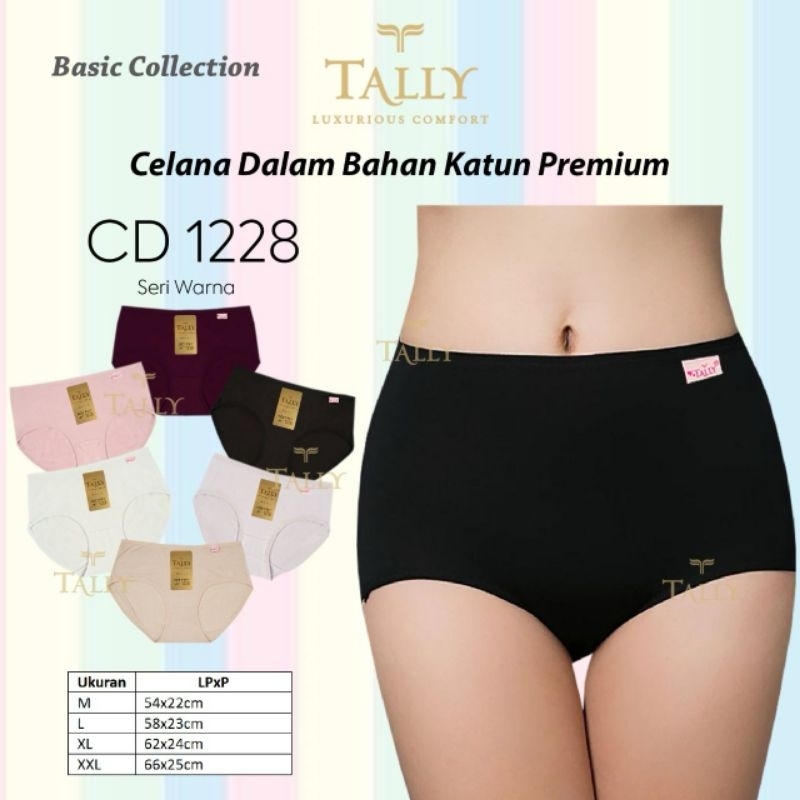 Tally (3pc, 6pc, 12pc) Cd/Celana Dalam Wanita Tally 1228 Midi Bamboo Panties Katun Adem Lembut Anti Nyelip Murah Gratis