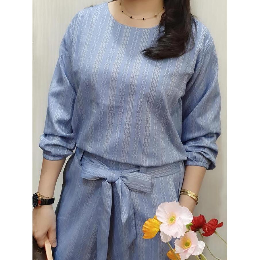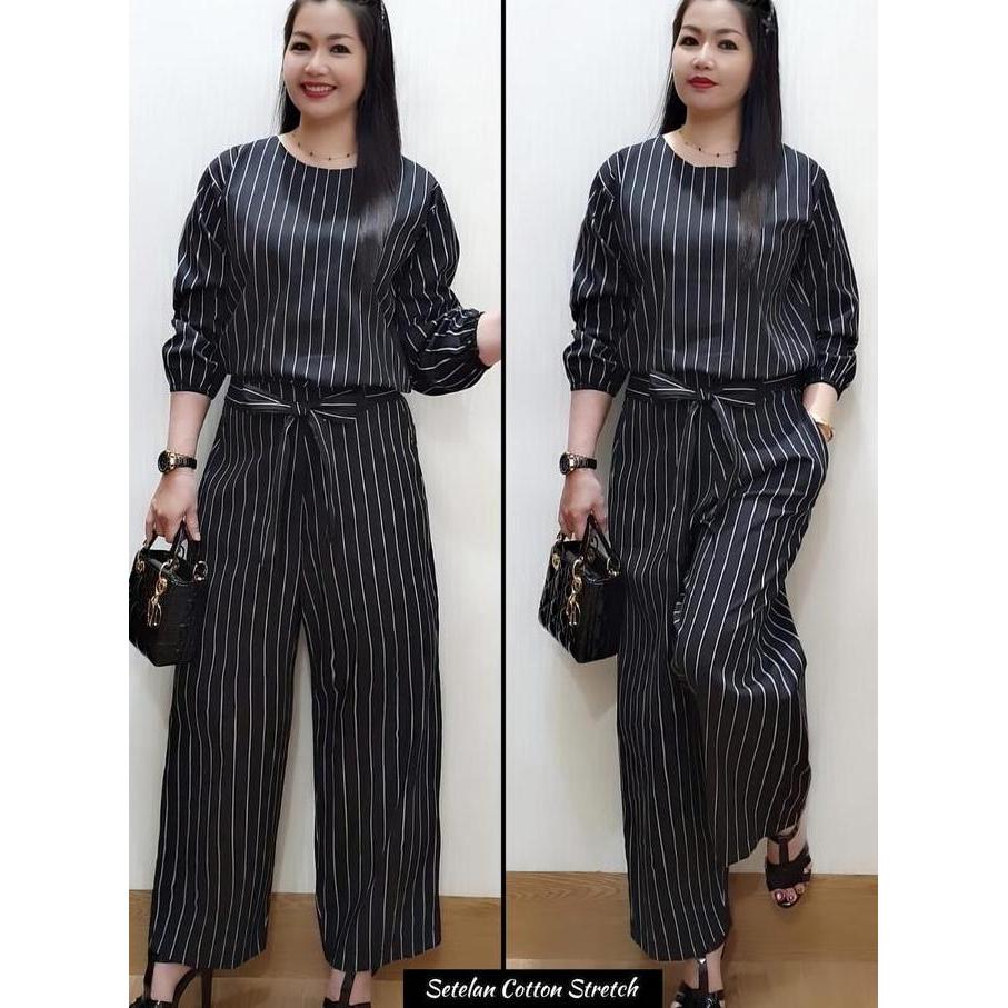 Girlfun- Setelan Wanita Celana Panjang - Oneset Salur - Setelan Garis - Setelan Katun - Setelan Korea Oneset Kekinian Celanakulot Panjang