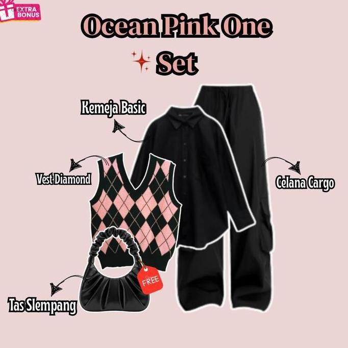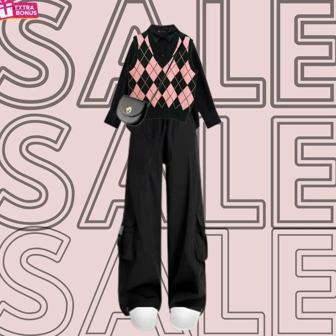 Promo One Set Korean Style Terbaru (Kemeja + Celana Cargo + Vest) Outfit Remaja Kekinian Setelan Modis-Nn40 One Set Vintage Outfit One Set Pink Outfit Baju Hitam Katun Panjang Baju Kpop Style Korea