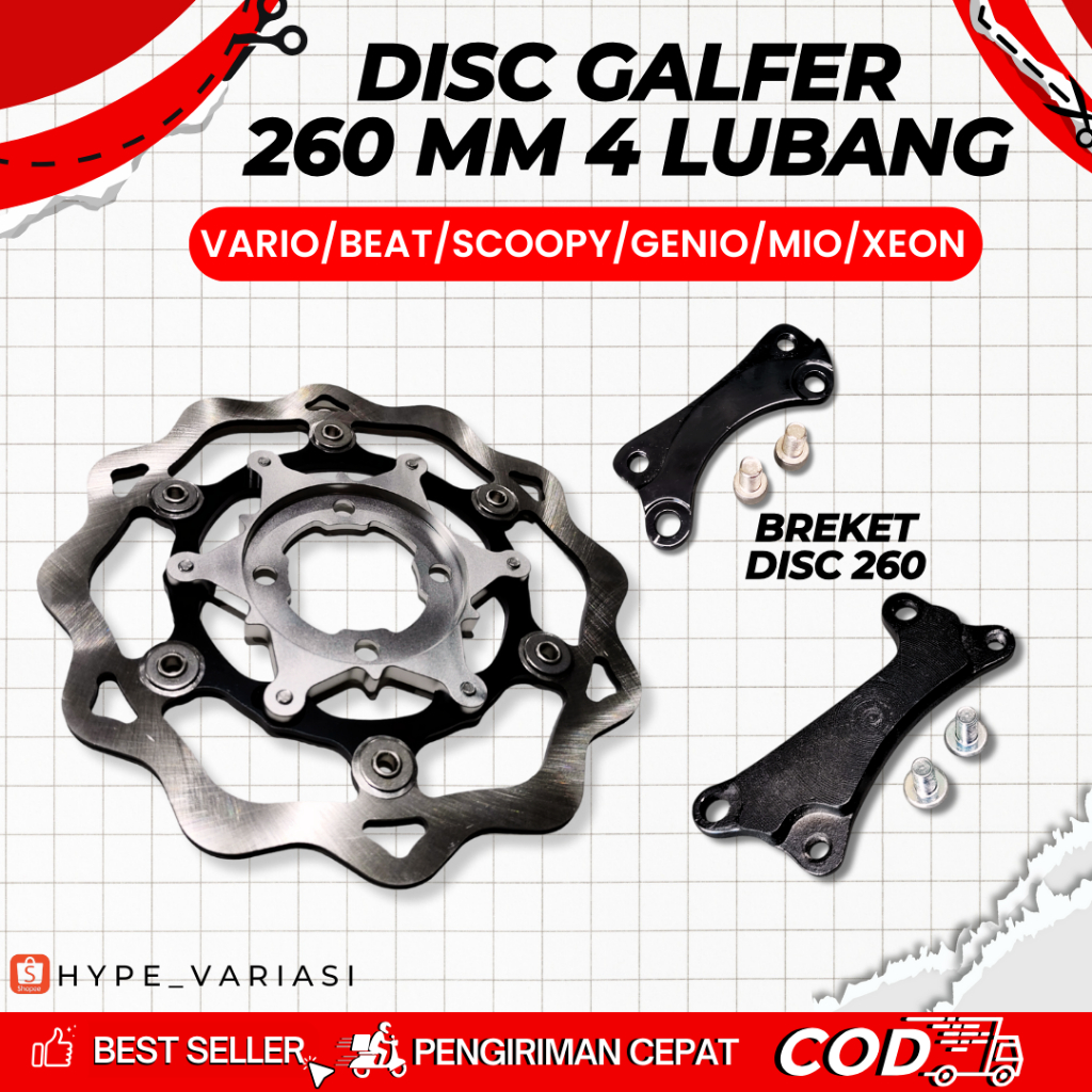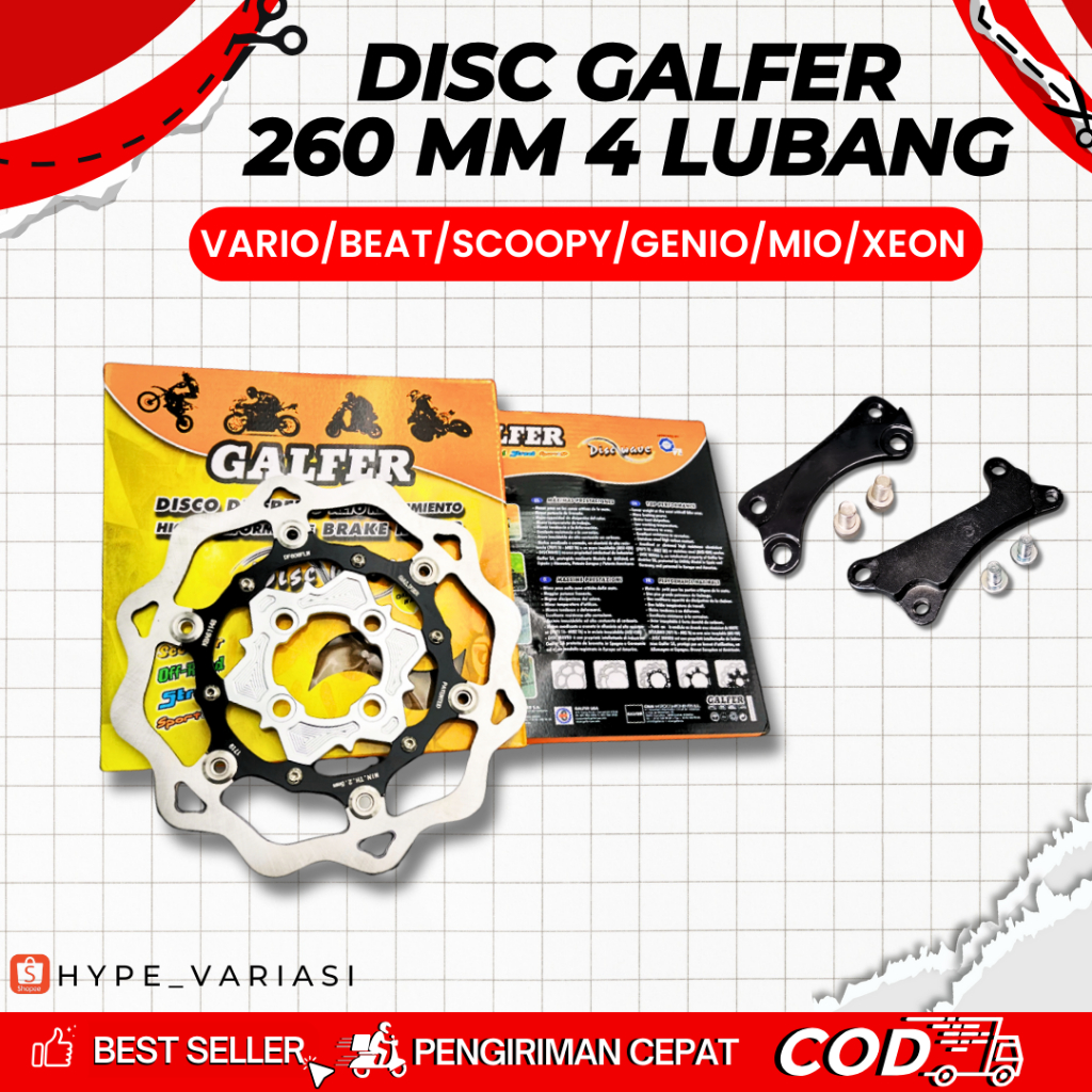 DISC PIRINGAN CAKRAM GALFER WAVE LUBANG 4 260 MM DISK GALFER 260 MM VARIO MIO SCOOPY GENIO BEAT FINO