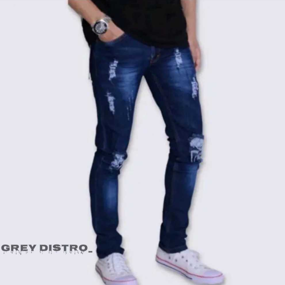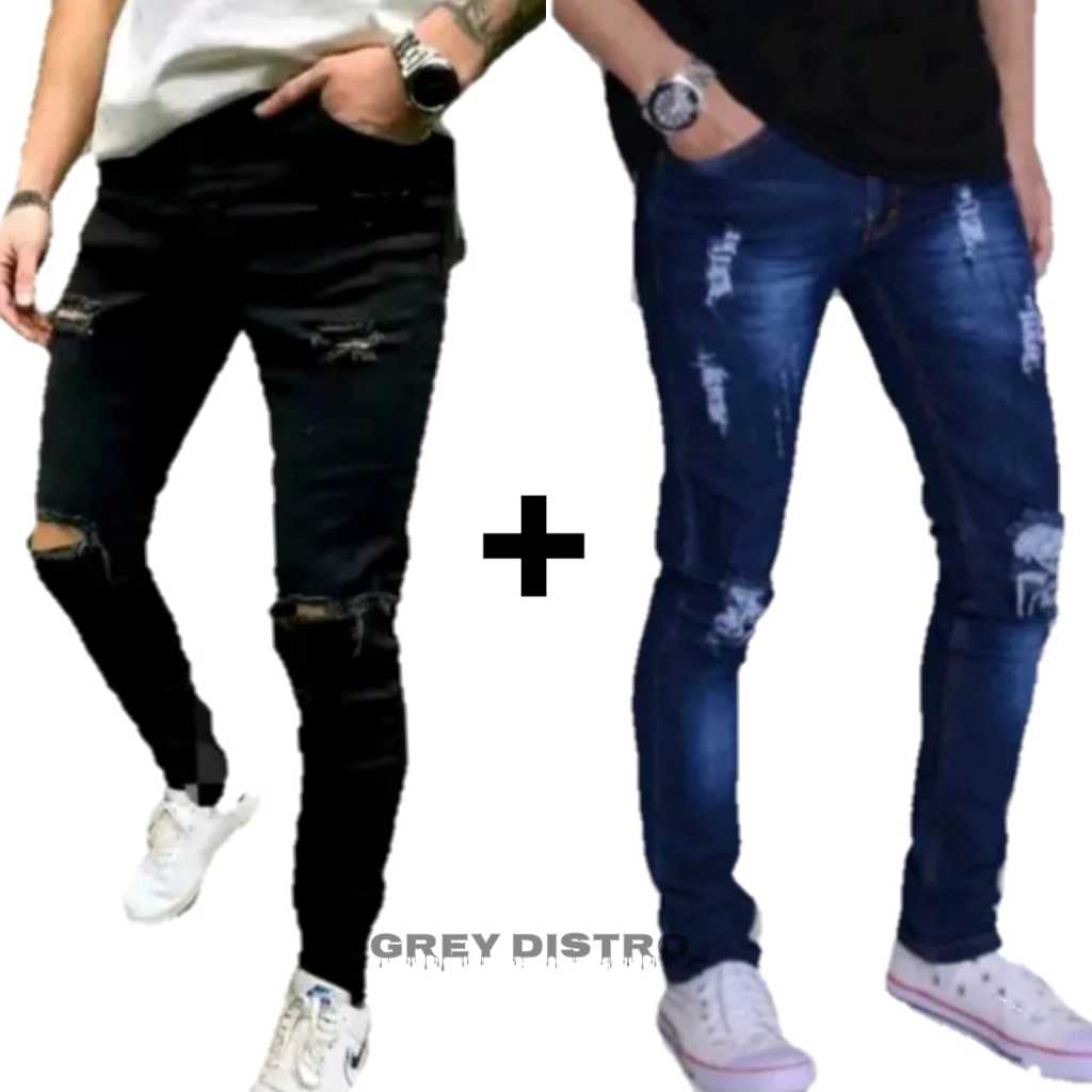 HEMAT Beli 1 dapat 2 / Celana Jeans Panjang Pria Sobek Lutut - Celana Pria Slimfitt Denim - Celana Pria Distro Murah Gra