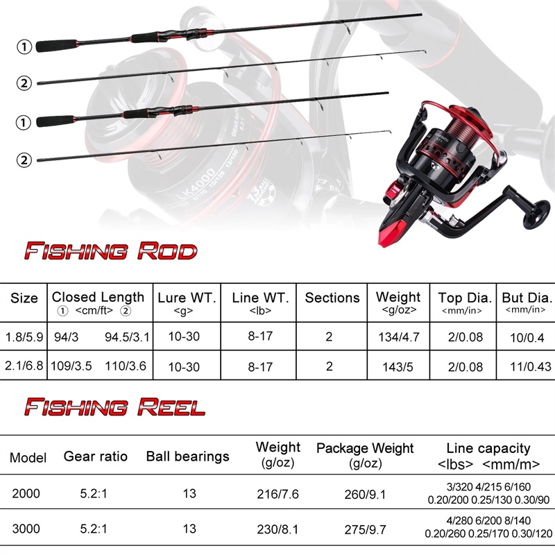 Sougayilang 1.8-2.1M Joran Pancing Set Reel Pancing Pancingan Set Lengkap 2 Bagian 13BB 5.2:1