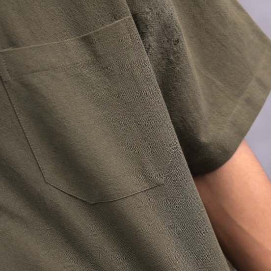 Wilmerstudios Kemeja Linen Oversize Pria Open Collar Lengan Pendek All Variant