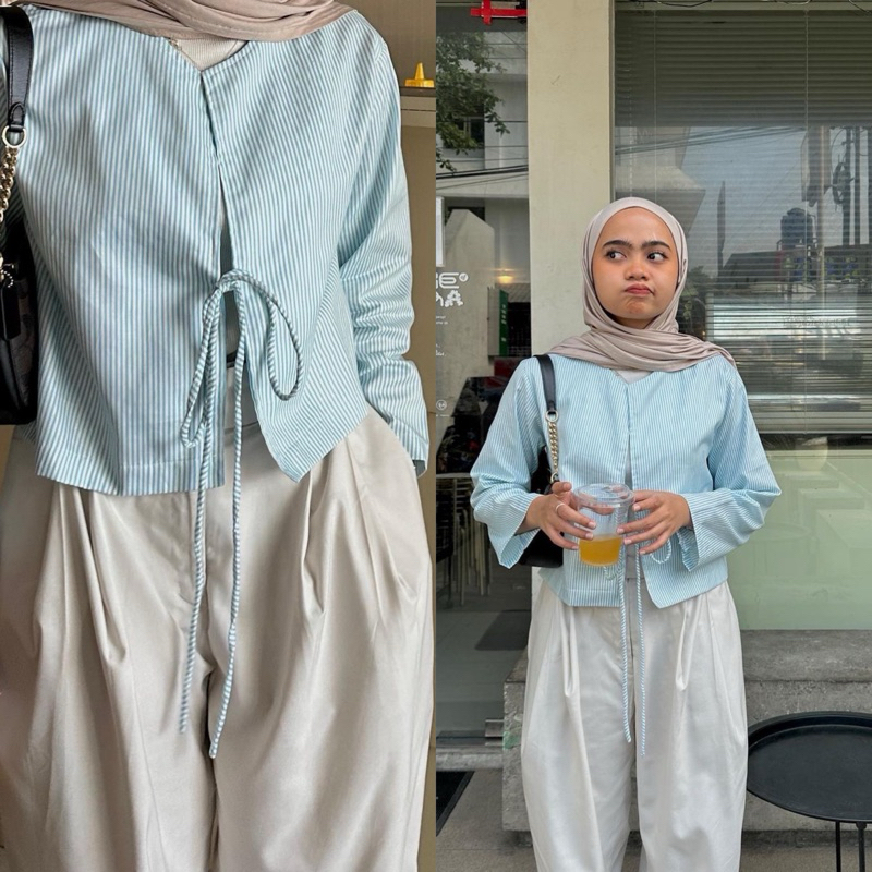 BIXBUX STRIPE OUTER CARDIGAN PITA OUTER TALI OUTFIT WANITA KOREAN STYLE CARDIGAN WANITA