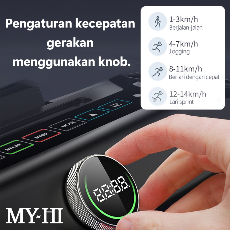MY-HI Treadmill electric low watt Treadmill garansi 7006 Layar LCD Bluetooth Musik BB 480KG 0-15km/h