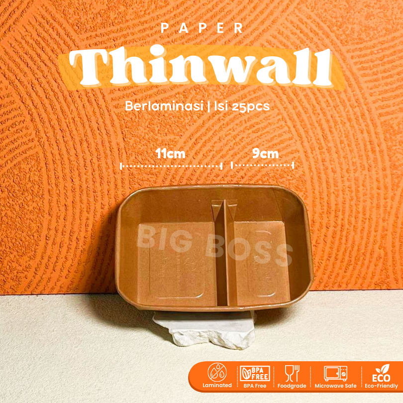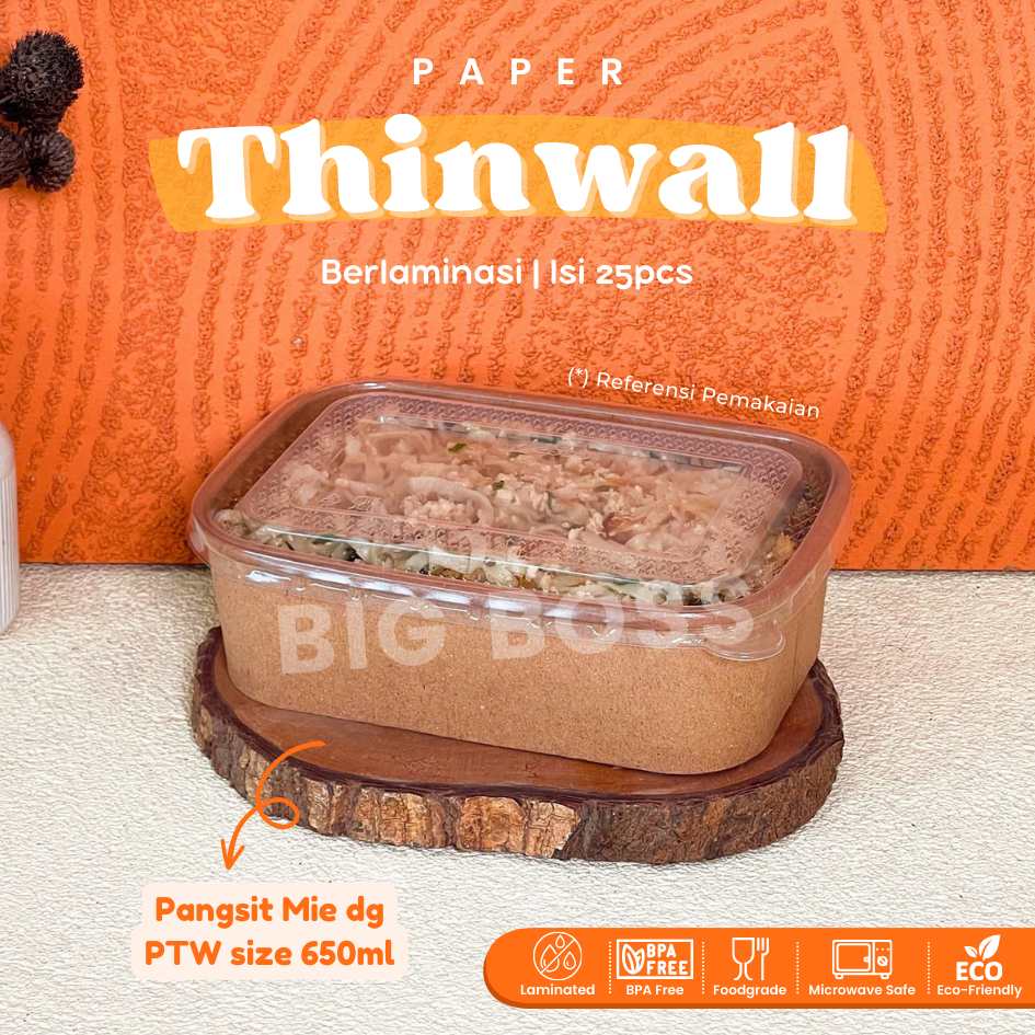 [ISI 25PCS] Paper Thinwall Rectangle Container Kraft Laminasi 650ml 800ml 1000ml +Tutup / Paper Rectangle Kotak Makan Ke