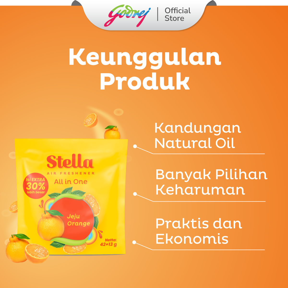 Stella All In One Jeju Orange 42+13gr - Pengharum Ruangan