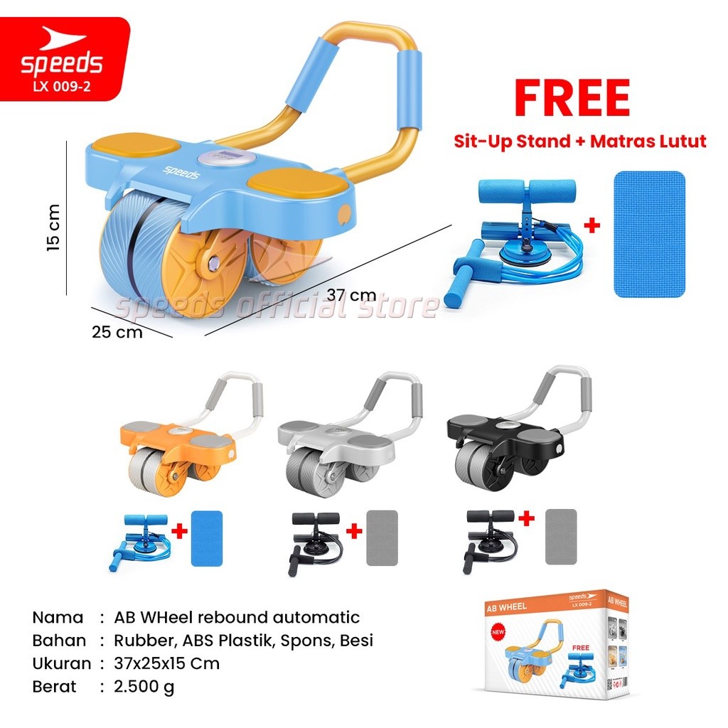 SPEEDS AB Wheels Plank Trainer Ab Roller 2 Roda Automatic Rebound 2in1 Cardio Portabel 009-2 BIRU