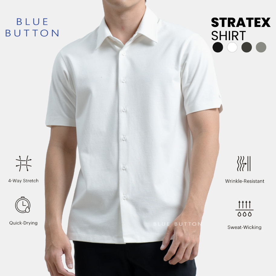BLUEBUTTON STRATEX™ Kemeja Pria Premium Body Contouring Dual-Layer Kemeja Anti Kusut Off White