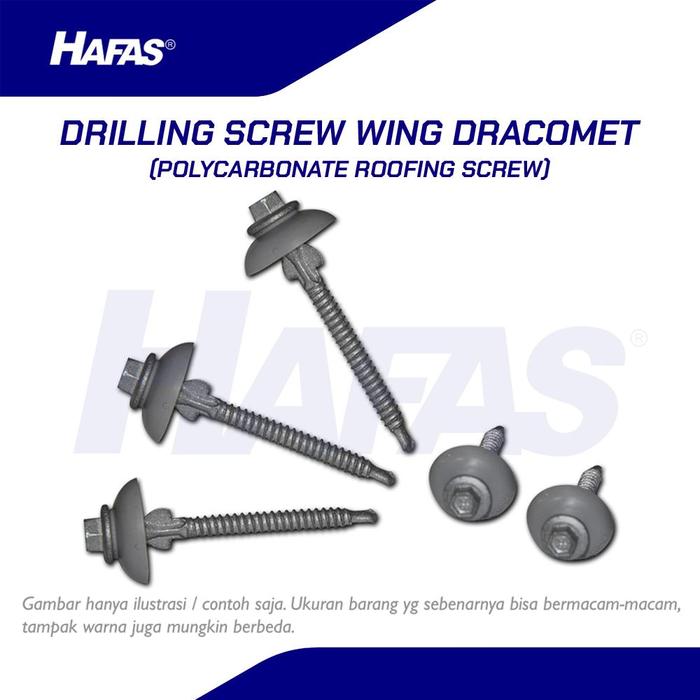 Sekrup Drilling Wing #6.2 x 50 Dacromet (Polycarbonate Roofing Screw) - 1 BOX (150 pcs)