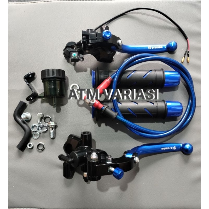 PAKET 4 ITEM MASTER REM ACCOSTATO 1 TABUNG SET KIRI DAN KANAN PLUS HANDGRIP MOTIF SISIK + JALU STANG CNC + SELANG REM PA