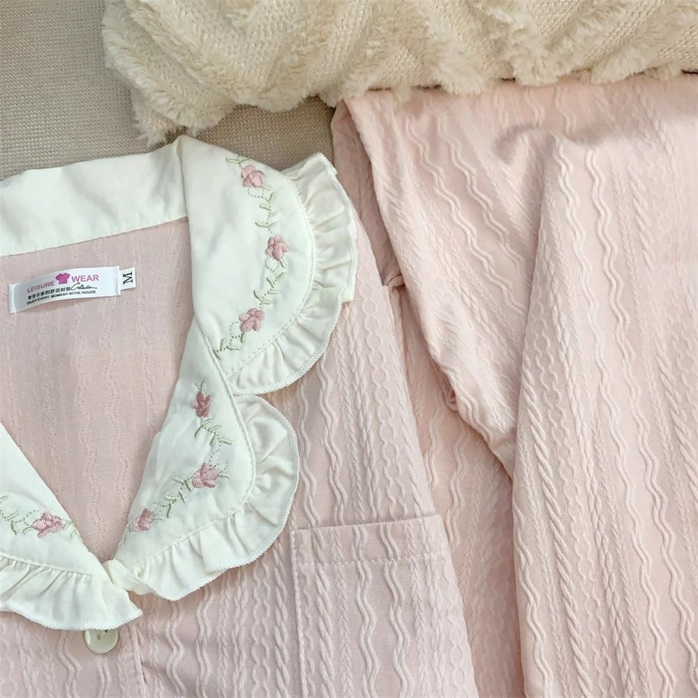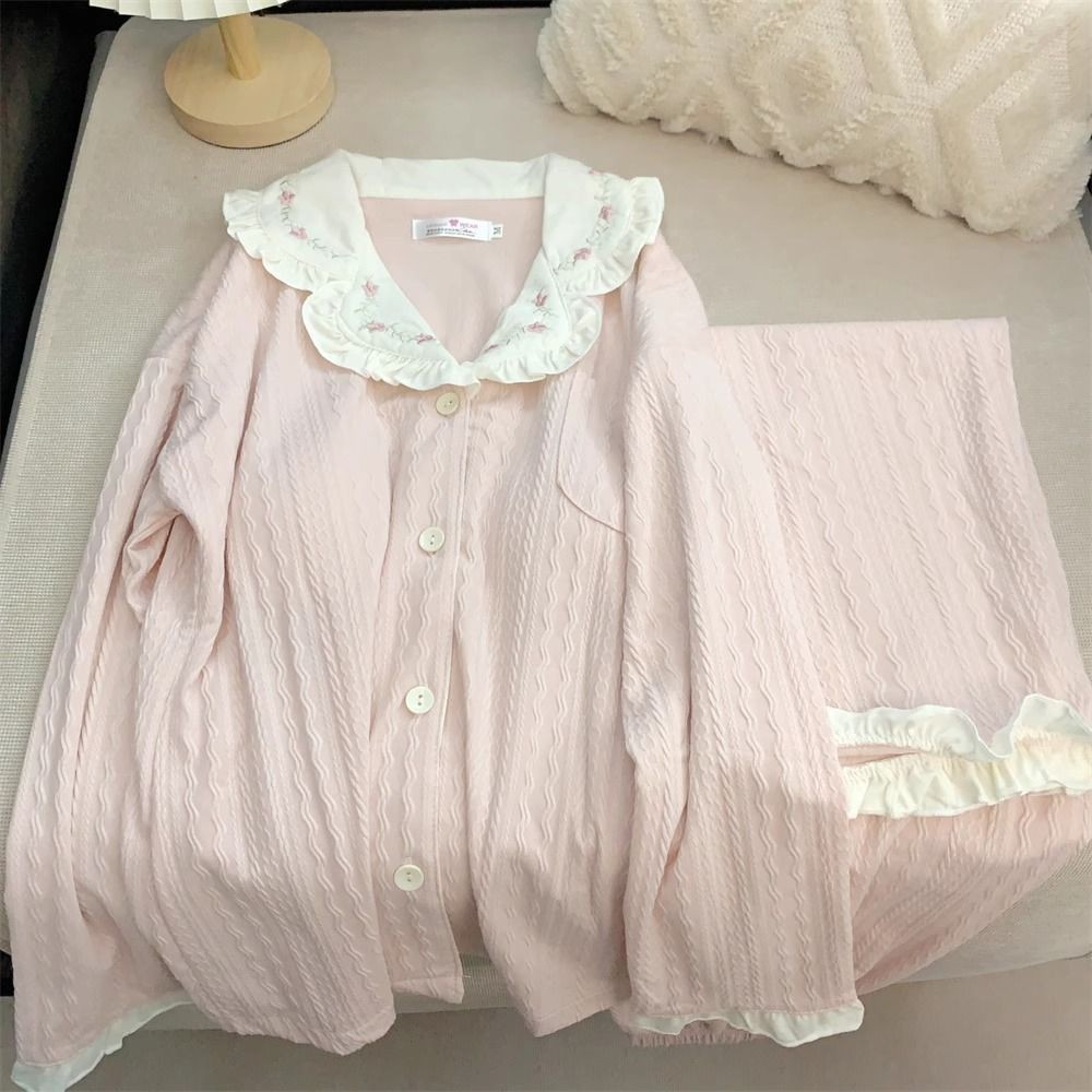 Lazy night Piyama Wanita Pink Segar Dan Lucu Lengan Pendek Longgar Manis Lengan Panjang Import