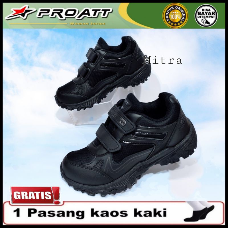 PRO ATT LST Sepatu Sekolah Anak Kecil Tanggung Cowok Cewek Hitam Tempel Perekat Original Murah Free Kaos Kaki - Size 30