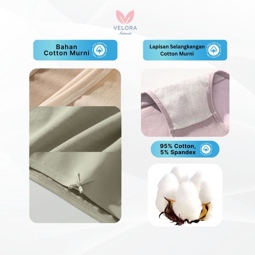 Velora - Celana Dalam Wanita Katun - Bahan Pure Katun Tebal Murah Nyaman Elastis KIARA COTTON PANTY Murah Gratis Ongkir