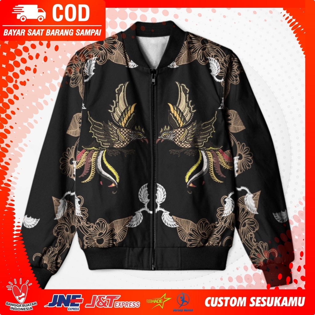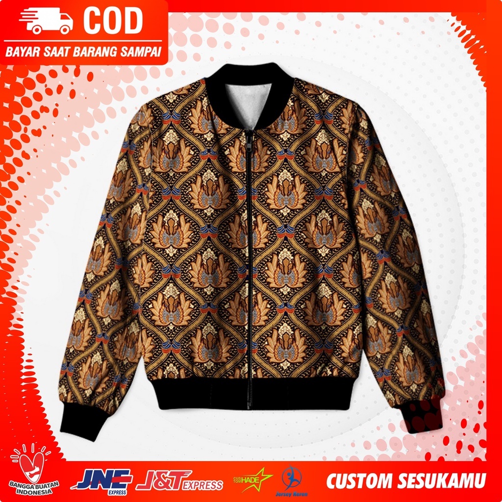 JAKET BOMBER BATIK CUSTOM FULLPRINT || JAKET BOMBER FULL PRINTING MOTIF BATIK PRIA WANITA - CUSTOMHADE