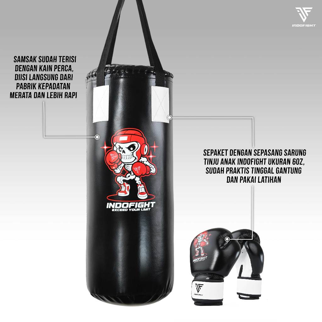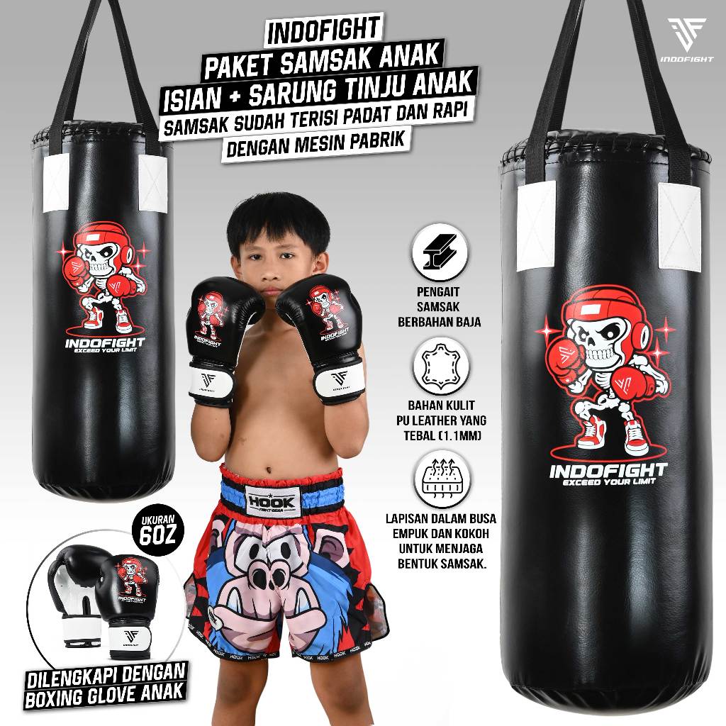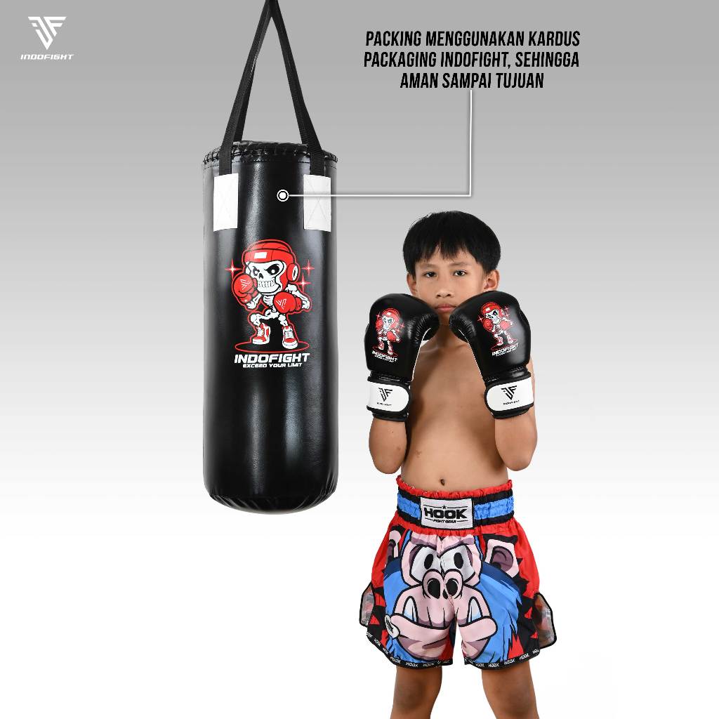 Paket Samsak Anak Indofight + Sarung Tinju Anak Indofight Sansak Muay Thai Punching Bag Taekwondo Sandsack Silat Sarung