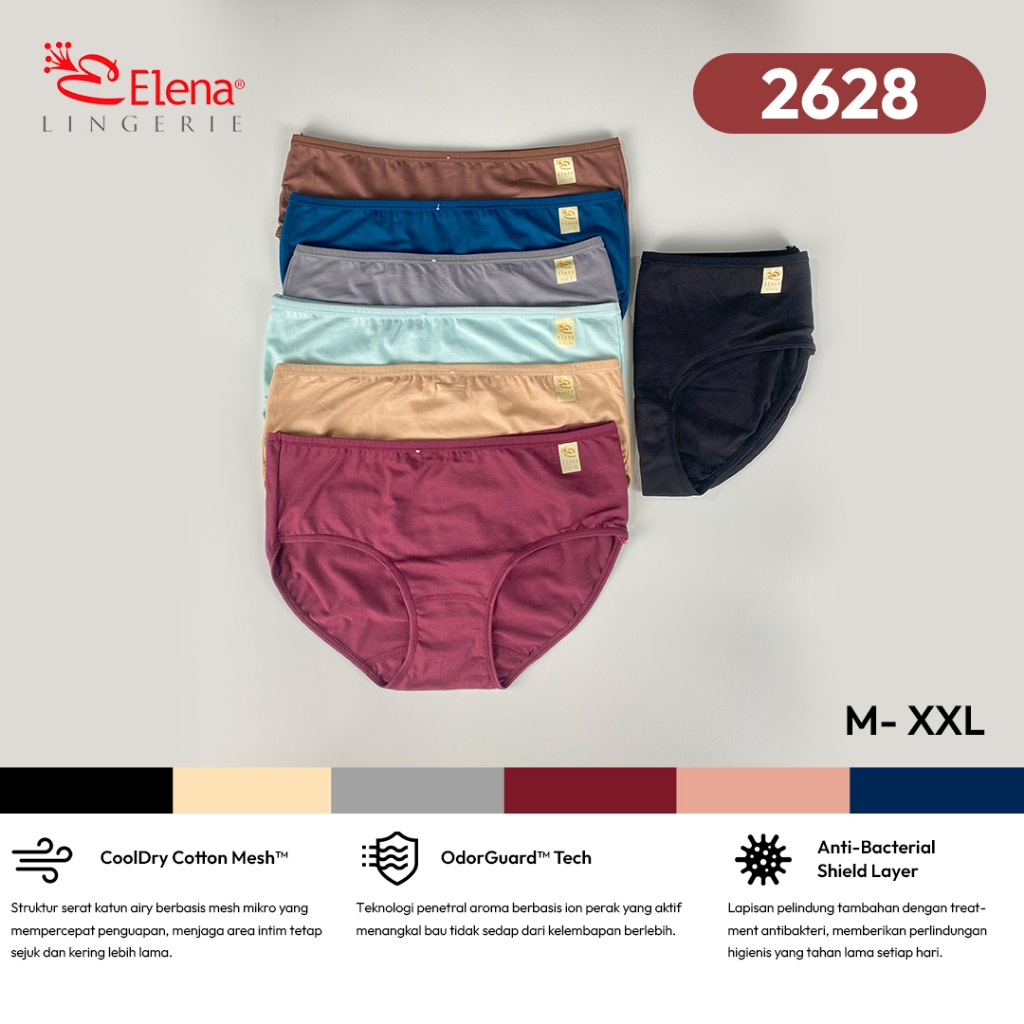 Elena Bundle 3Pcs Celana Dalam Wanita Katun Pakaian Dalam Mid Waist Breathable M - XXL E 2628 Murah Gratis Ongkir