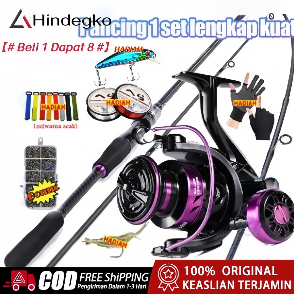 joran Pancing Set 1.68M/1.8M/2.1M/2.4M Satu set reel dan joran 1.8M2.1M dan reel full metal Setelan warna ungu Reel Pan