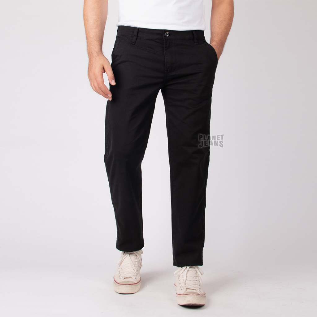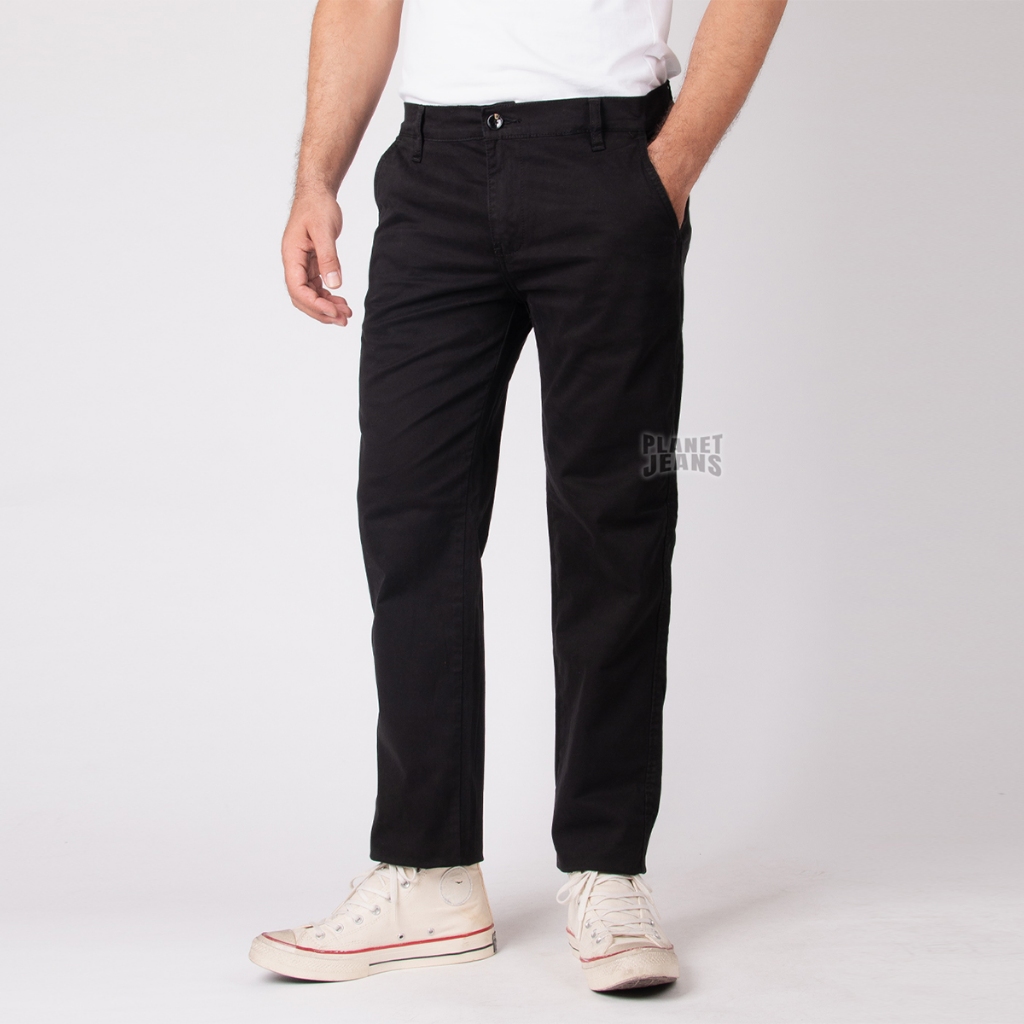 Planet Jeans - Celana Chino Pria Hitam Slim Straight Fit - Kadeo Ultimate Chino Pants Modern Slim 393