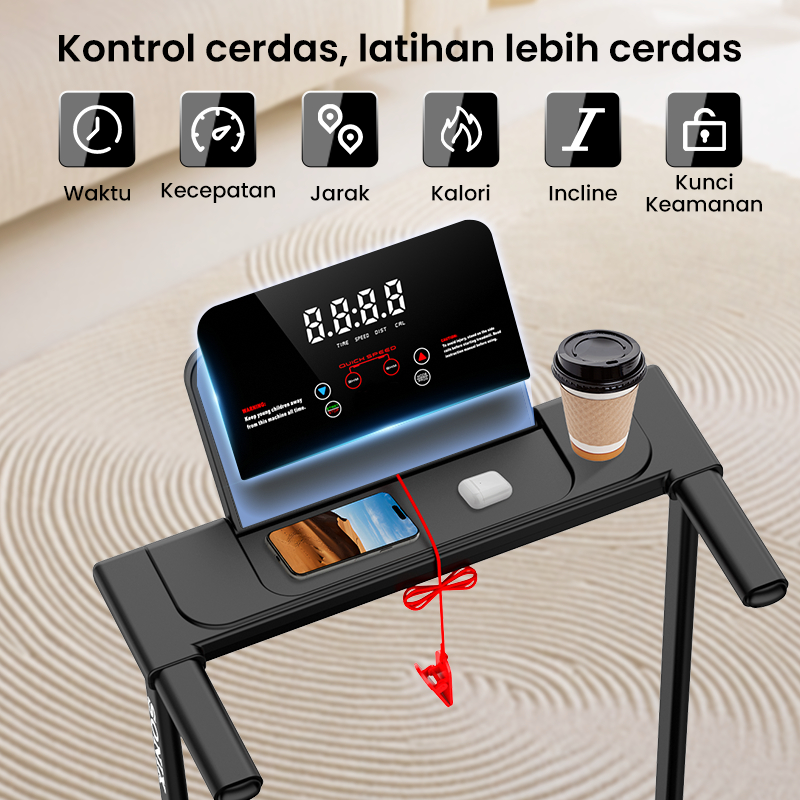 Sonix Treadmill Electric Low Watt STR04 Portable Lipat Alat Olahraga Di Rumah Incline 8° Walking Pad LED Display Screen