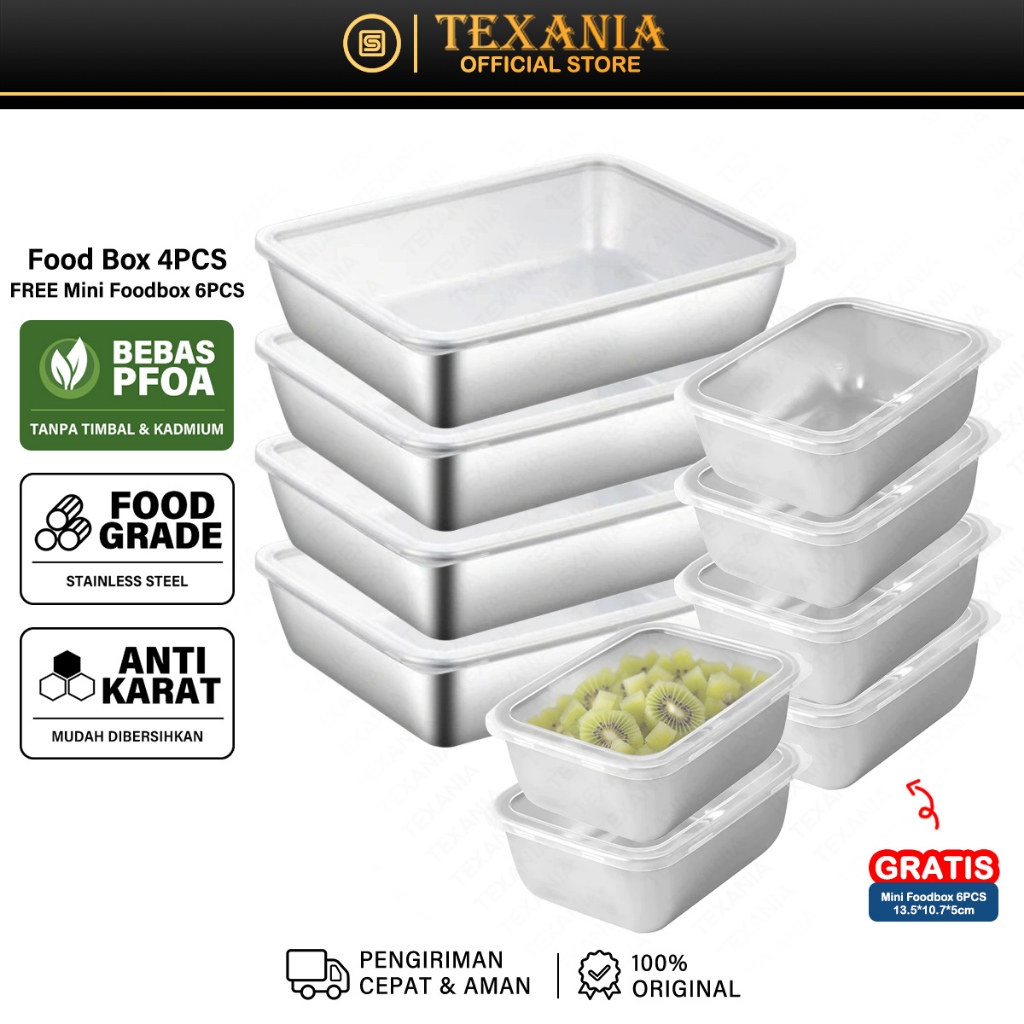 [BUY 4 FREE 6PCS DAPET 10PCS]TEXANIA Food Box 25cm isi 4pcs FREE 13cm 6pcs - Food Container kulkas- nampan stainless den