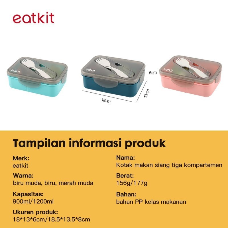 Eatkit Set Lunch Box 3in1 Kotak Makan Siang 1200ml Microwaveable Lunch Bag Thermal BPA Free Murah Gratis Ongkir