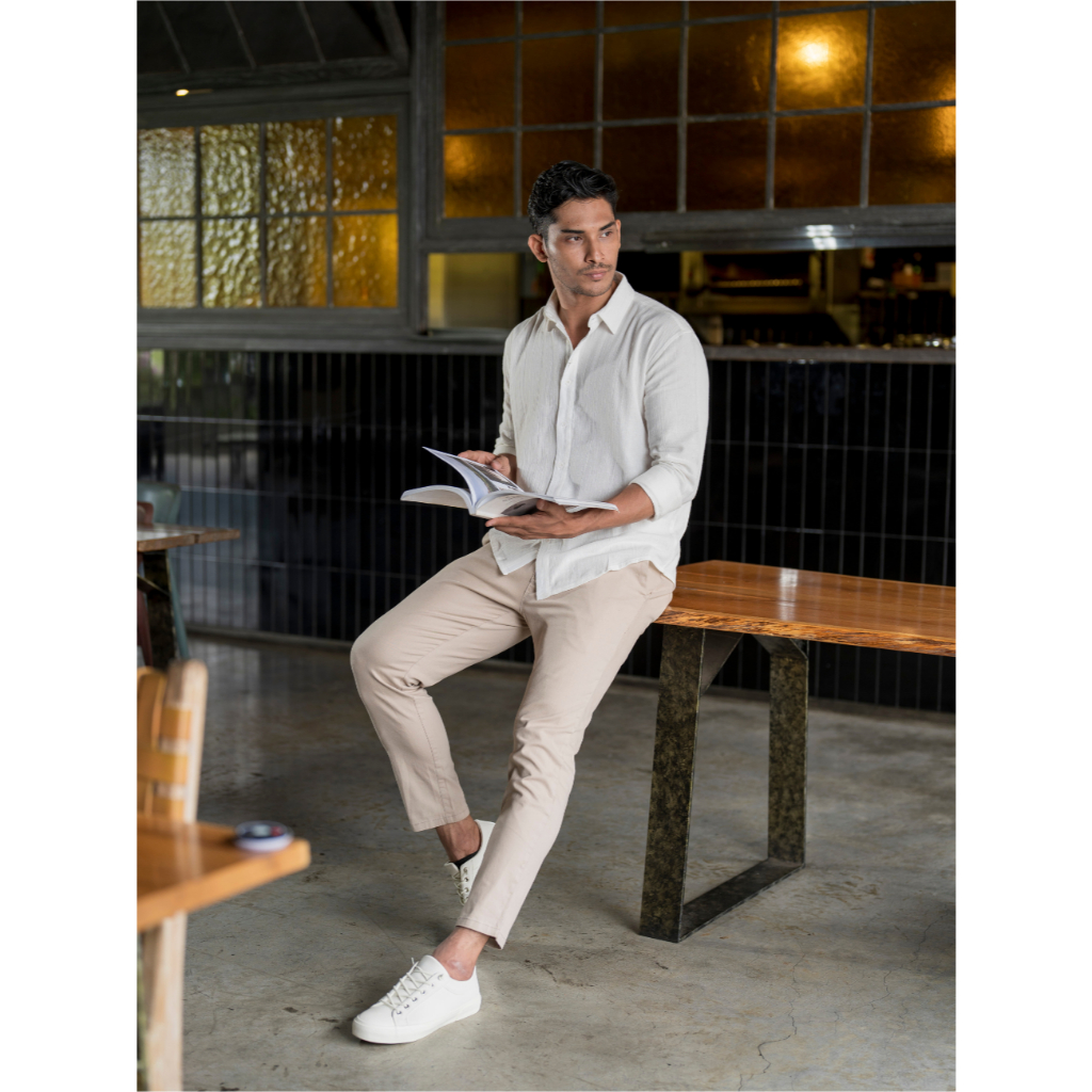 Tweltree Trukey Linen Long Shirt Off White | Sejuk dan bertekstur