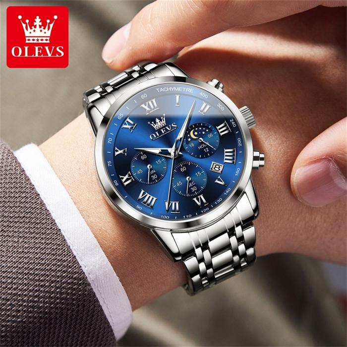 OLEVS JAM TANGAN PRIA ANTI AIR ori TERBARU COWOK LUMINOUS KALENDER STAINLESS STEEL WATCHES FOR MEN NEW MODEL WITH KOTAK