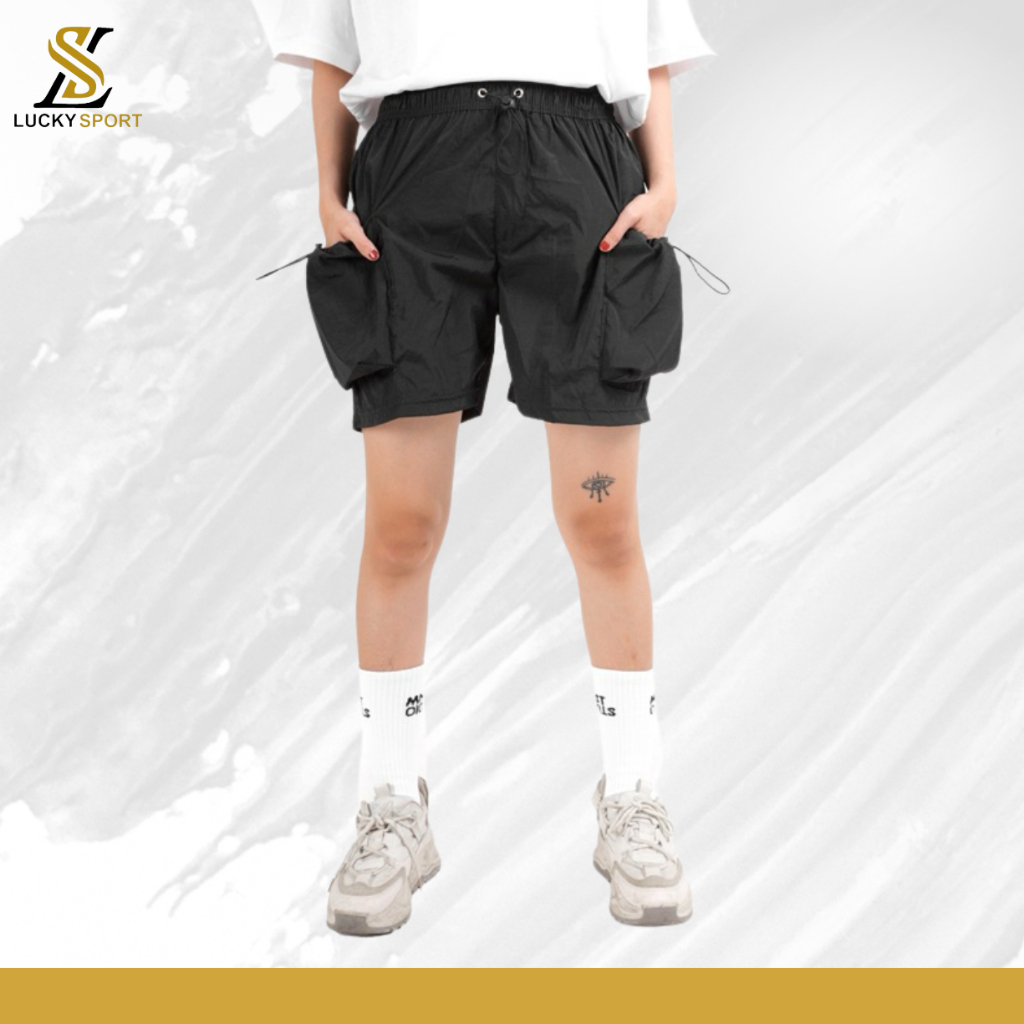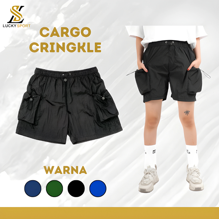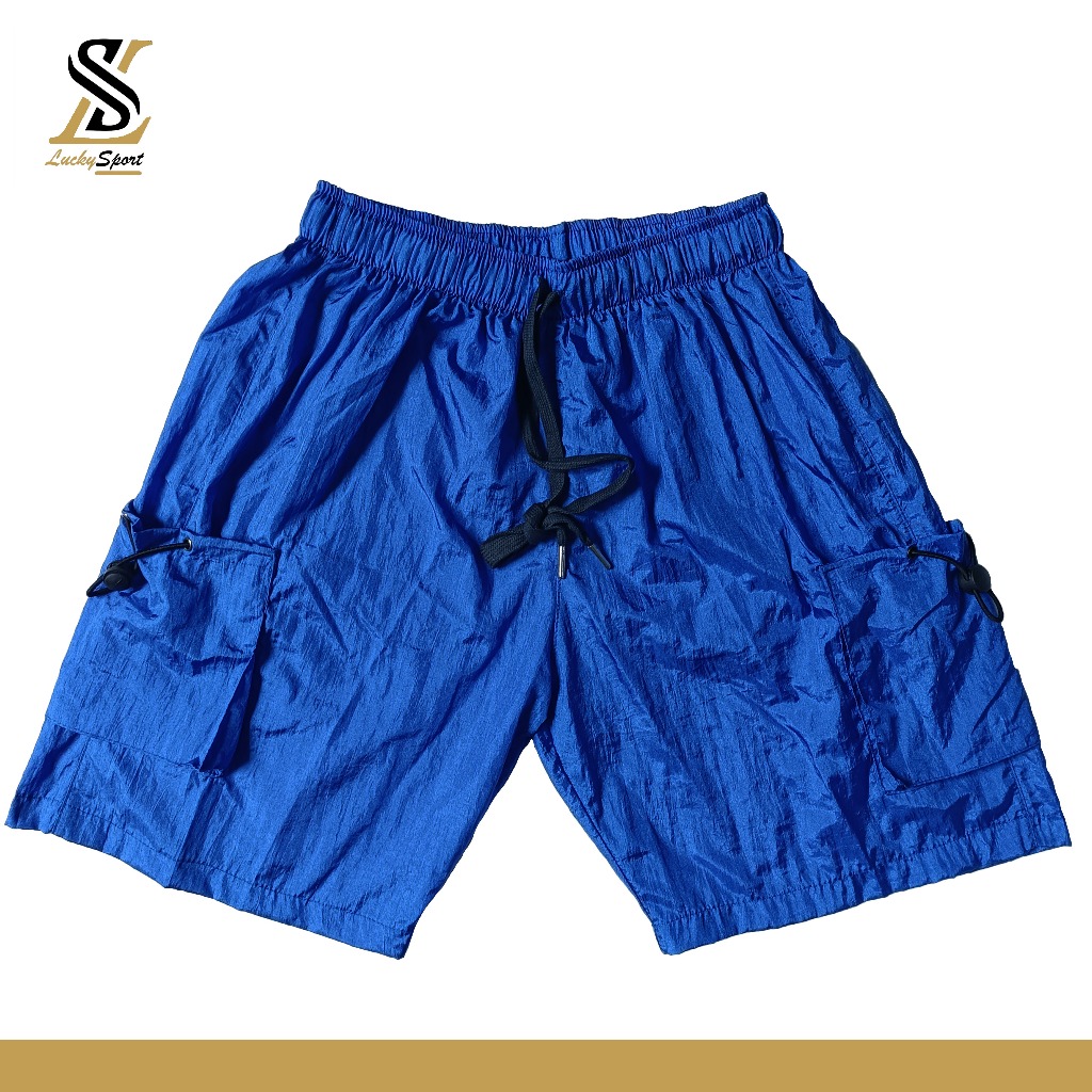 Celana Pendek Cassual Sporty Nylon Shorts Crinkle Cargo Pria Wanita Premium Kusut Murah Gratis Ongkir