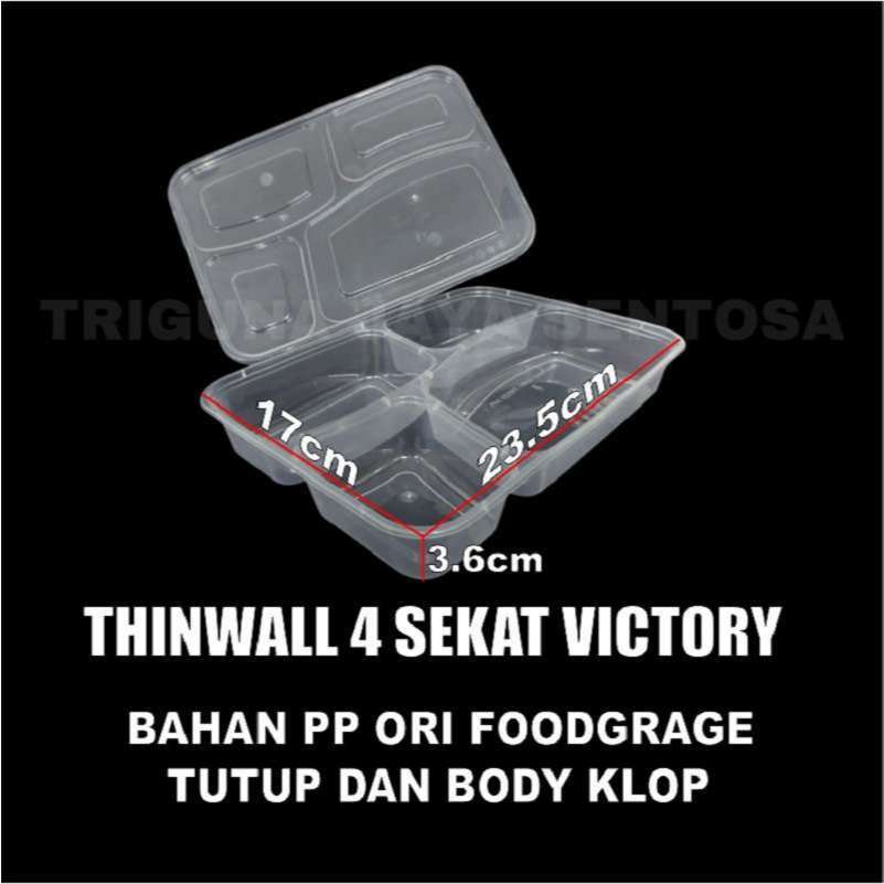 Thinwall 4Sekat Tebal 40gr Tutup Datar n 4 Sekat Cembung Victory n 3Sekat RL3 Long Klir Pack JSP Murah Gratis Ongkir