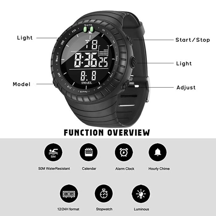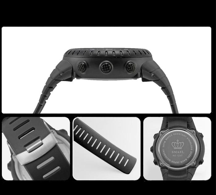 SMAEL JAM TANGAN DIGITAL SPORT PRIA WANITA 1237 KACA STAINLESS STEEL TAHAN AIR 50M LED DISPLAY ALARM STOPWATCH COMPLETE