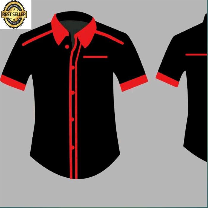 KEMEJA SERAGAM KERJA SERAGAM KOMUNITAS DLL WEARPACK SAFETY PRIA WANITA HITAM PENDEK - MERAH, M
