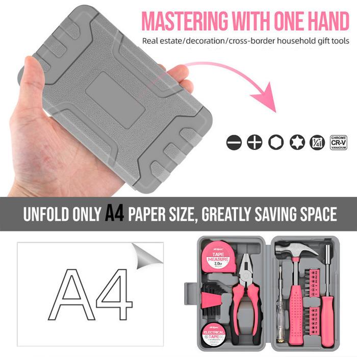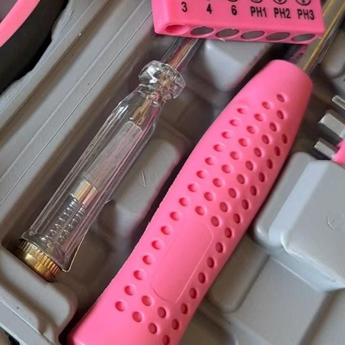 TOOL KIT SET PERALATAN RUMAH TANGGA WARNA PINK 24 PCS ALAT PERTUKANGAN SERBAGUNA SET LENGKAP UNTUK RUMAH KANTOR PERBAIKA