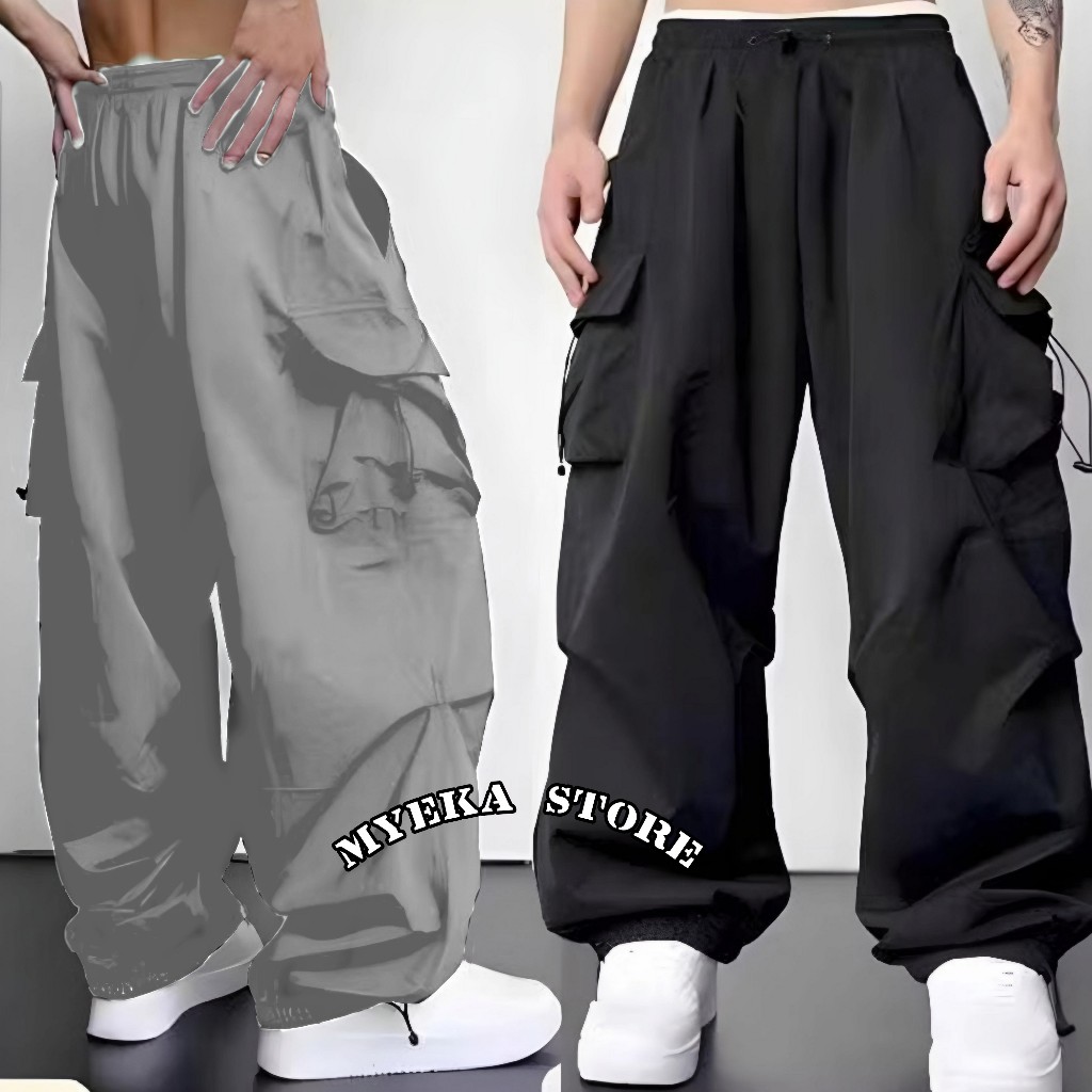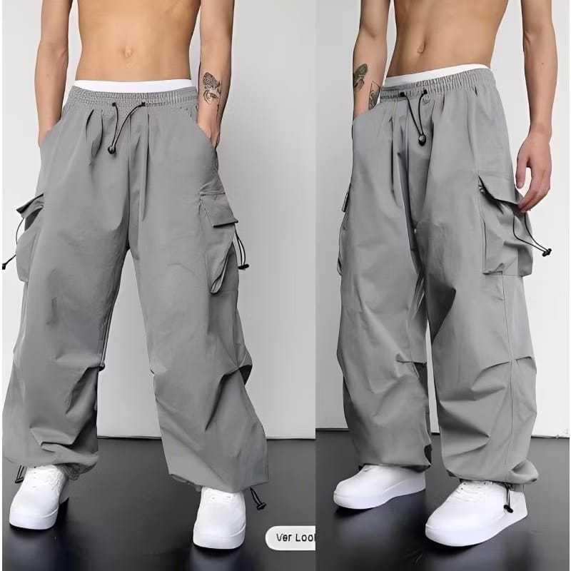 Celana Cargo Panjang Pria Pinggang Karet Tali Serut Skena Kekinian Murah Gratis Ongkir
