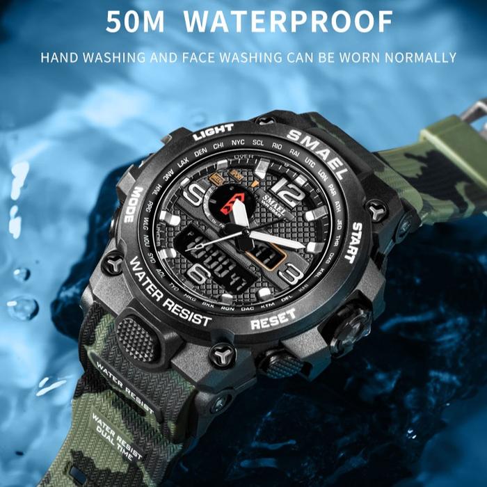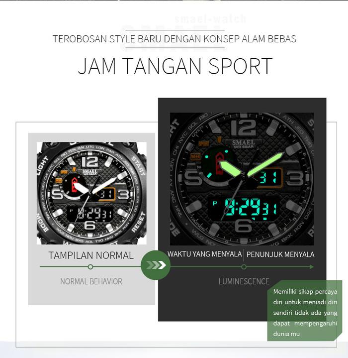 SMAEL JAM TANGAN SPORT ANALOG DIGITAL PRIA WANITA MODEL 1545D KACA STAINLESS STEEL TAHAN AIR 50M STRAP PU BERKUALITAS FI