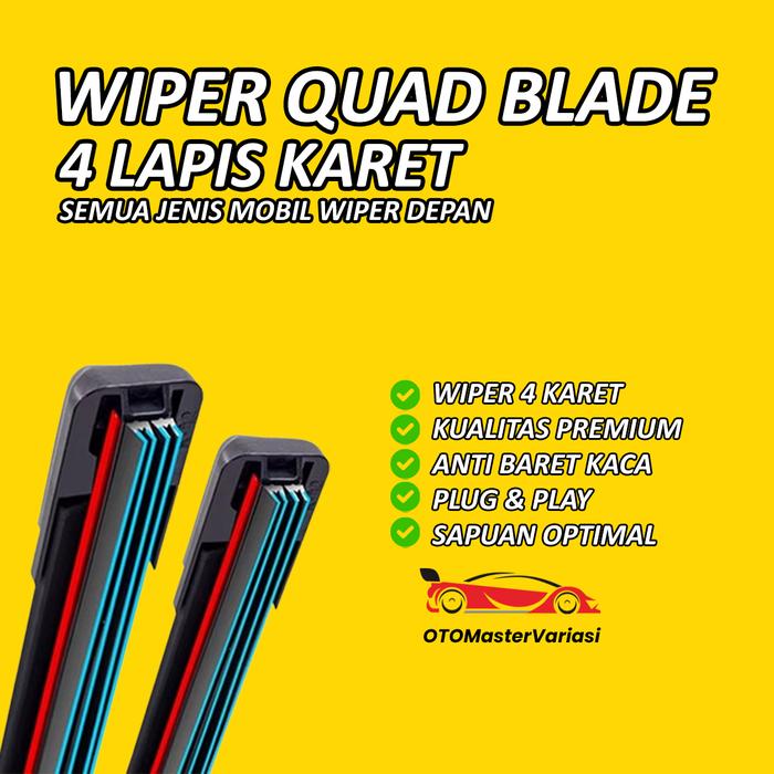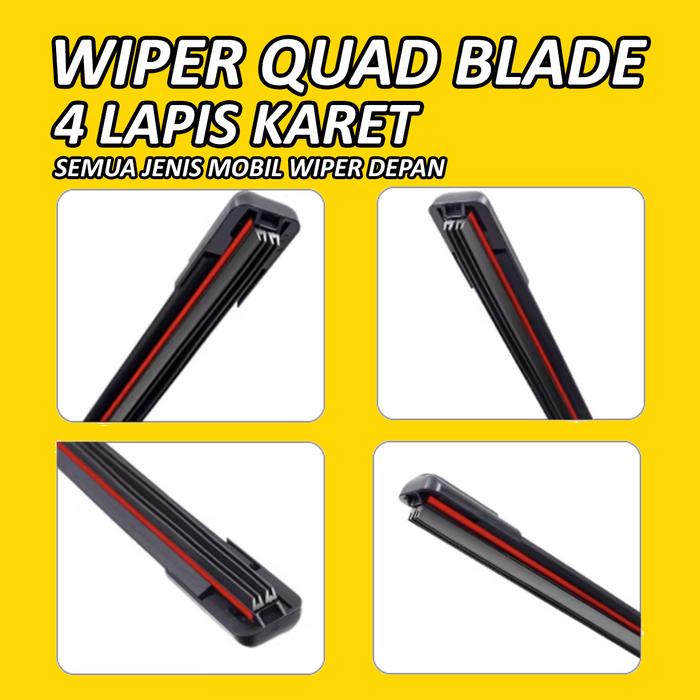 WIPER 4 LAPIS KARET FRAMELESS QUAD BLADE UNIVERSAL KANAN KIRI SEMUA TYPE WIFER MOBIL - JENIS LAIN DI NOTE