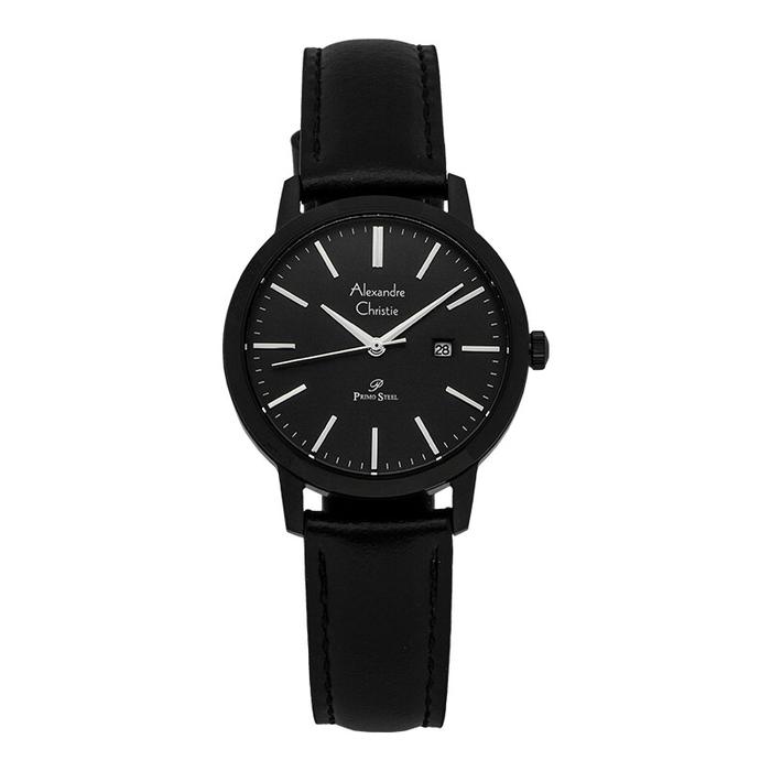 JAM TANGAN WANITA ALEXANDRE CHRISTIE PRIMO STEEL AC 1007 LD LIPBA LADIES BLACK DIAL BLACK LEATHER STRAP