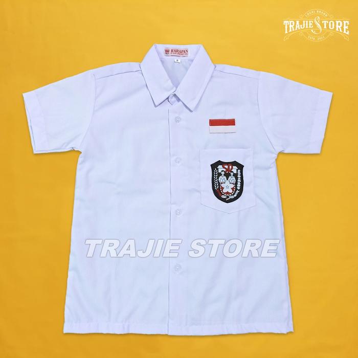 BAJU KEMEJA SERAGAM SEKOLAH MERAH PUTIH SD LENGAN PENDEK KANCING KANTONG LOGO BORDIR TEBAL PANJANG BAHAN OXFORD BERSE