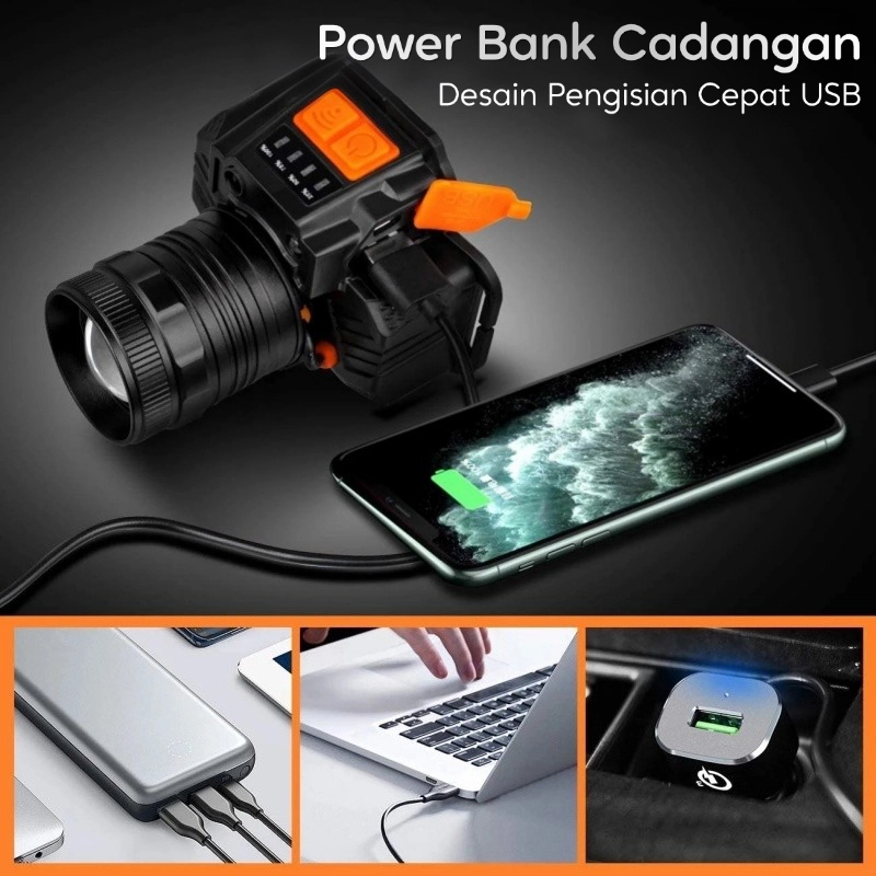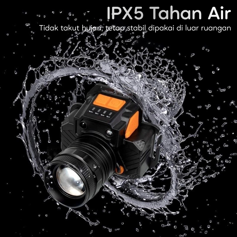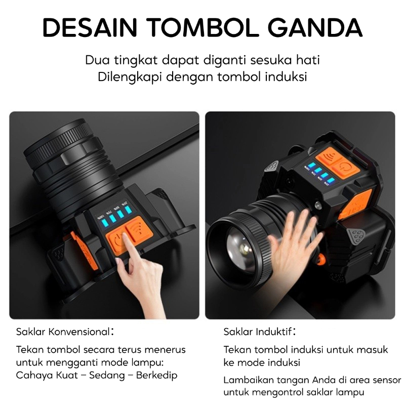 MOKETA Senter Kepala Super Terang 2000W Tahan Air Zoom Dengan Sensor Gerak Cas USB Headlamp Outdoor Untuk Camping Mancin