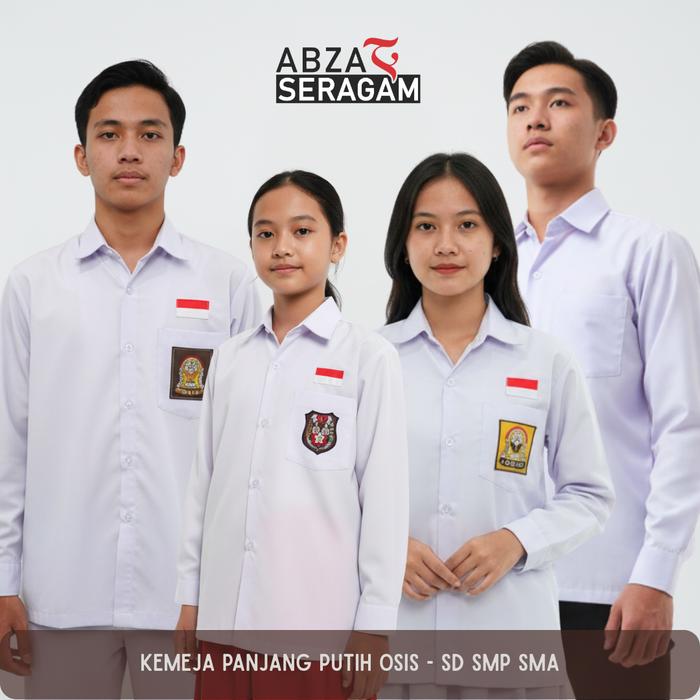 KEMEJA PANJANG PUTIH SERAGAM SEKOLAH BED BORDIR SD SMP SMA BAJU PUTIH LENGAN PANJANG BED OSIS BORDIR PUTRA DAN PUTRI BAH