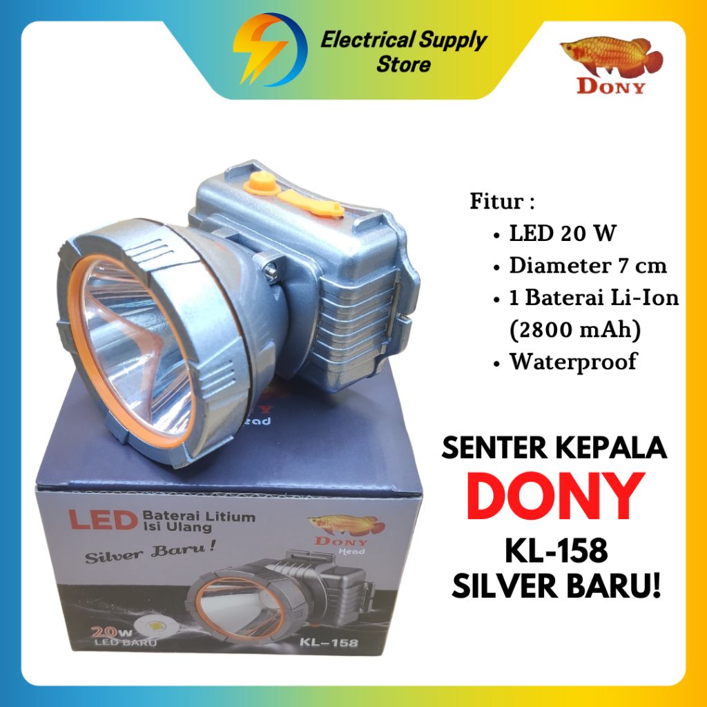 SENTER KEPALA DONY KL-158 | LED 20 W | SUPER TERANG | CAHAYA PUTIH & KUNING | BISA DICAS | ANTI AIR