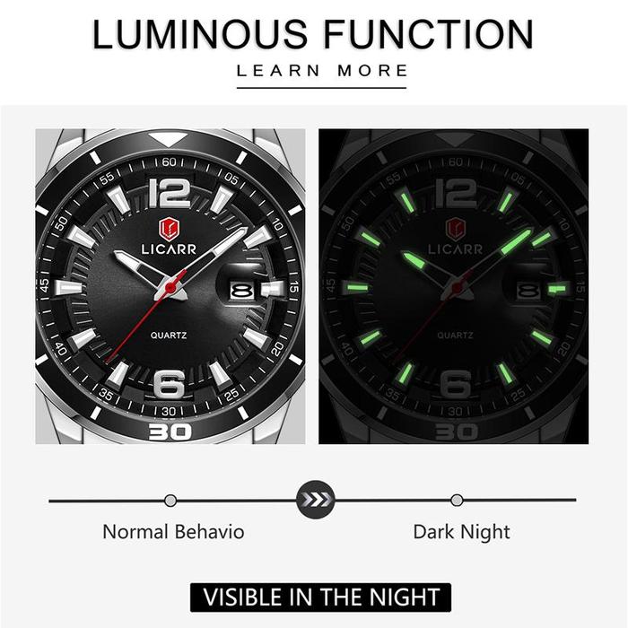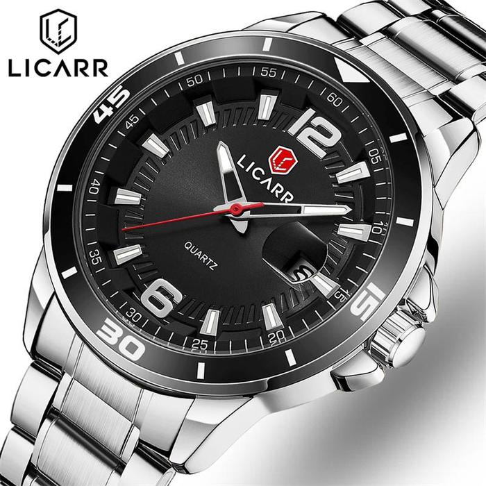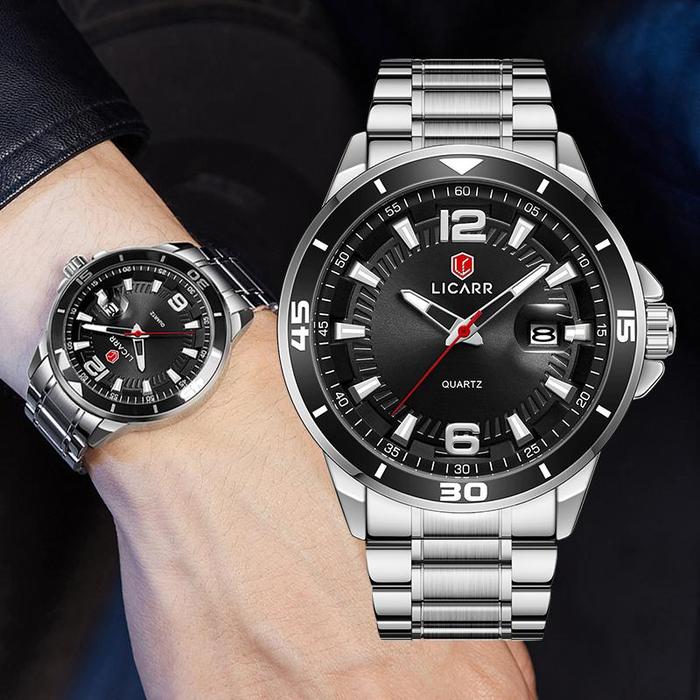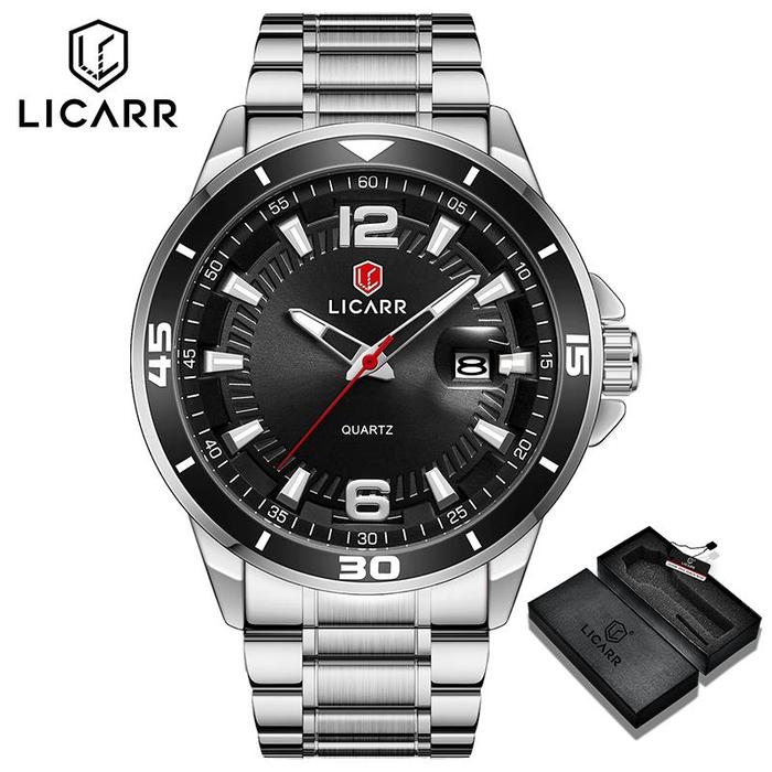 LICARR JAM TANGAN STAINLESS STEEL PRIA QUARTZ MOVEMENT ori BISNIS FASHION ANTI AIR MAN WATCH 9525 - silver HITAM silver