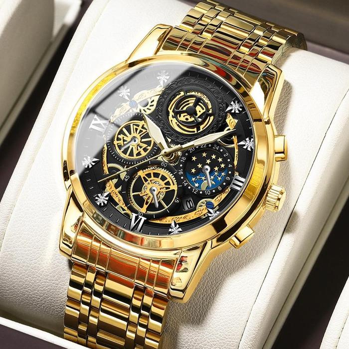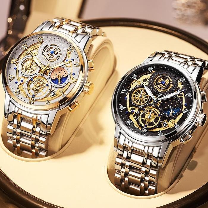 HOT SALE JAM TANGAN JP-17 MEWAH TERBARU TAHAN AIR MEN WATCH KALENDER AKTIF - 60lld5 BLACK